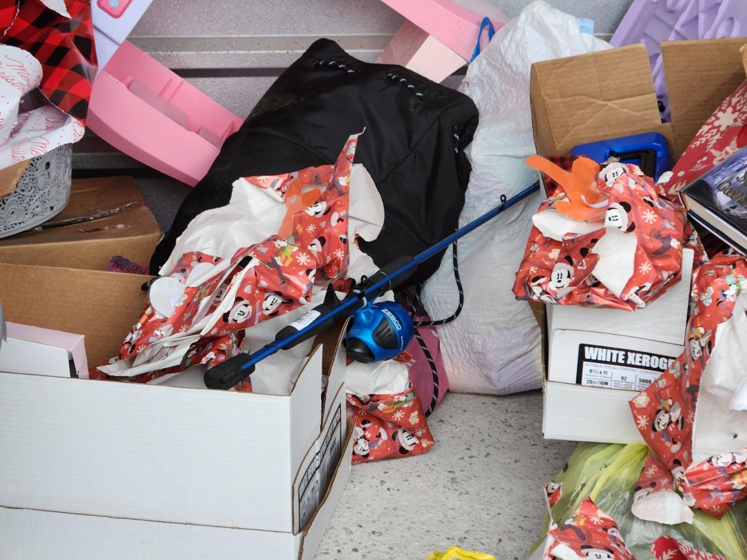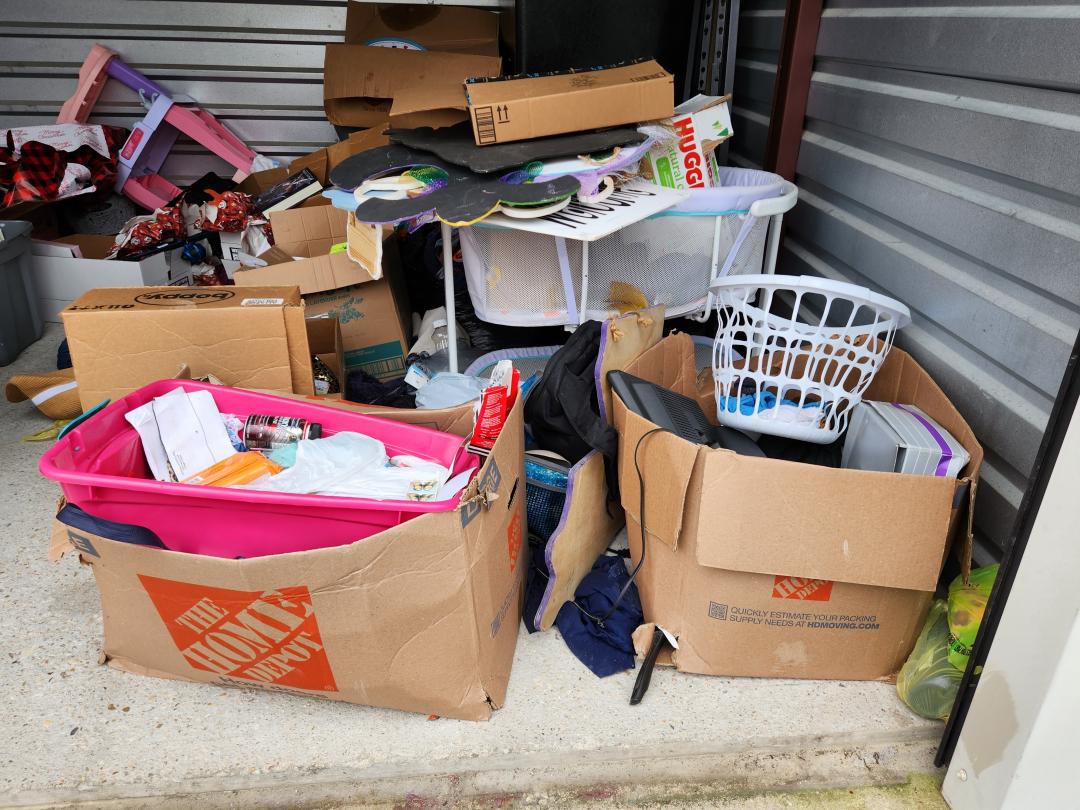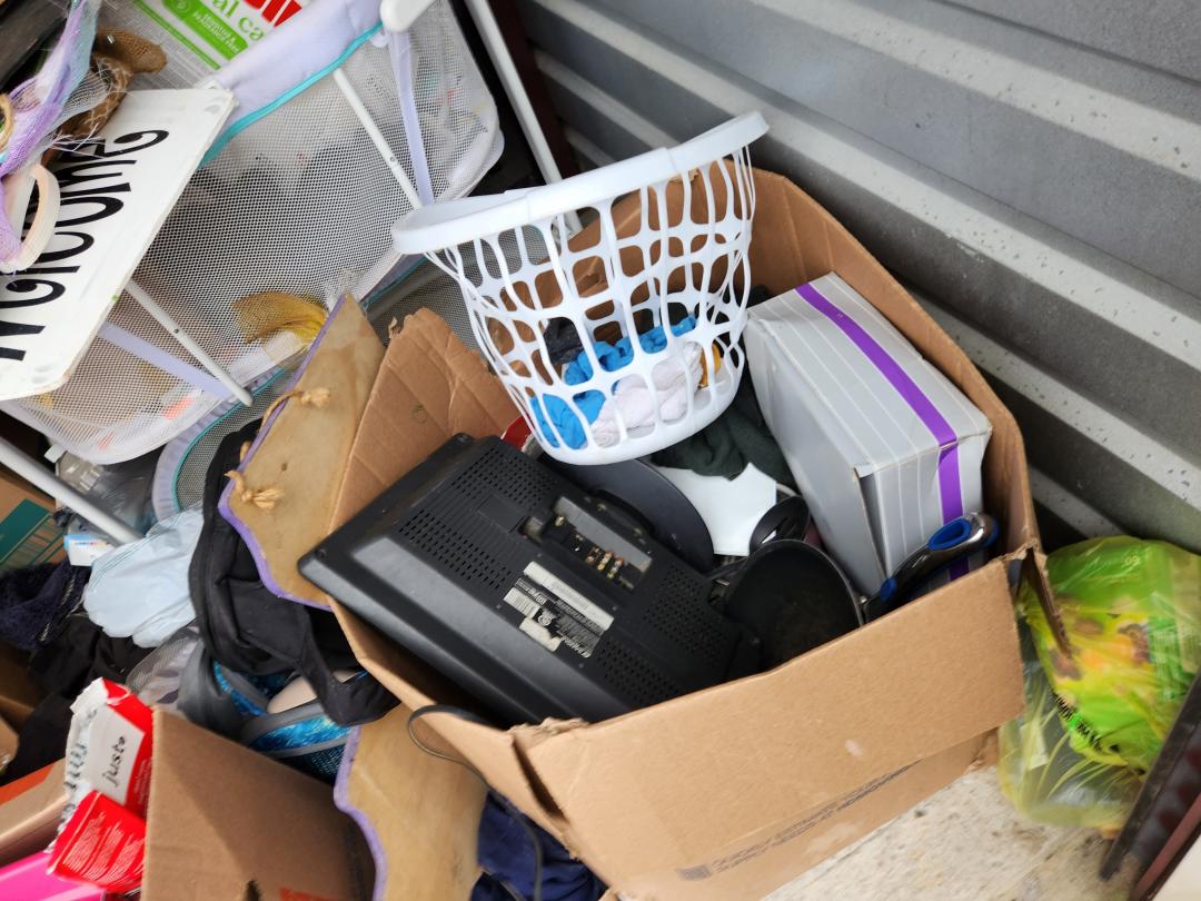 This unit appears to contain…Baby Items, Boxes, Dishes/Kitchenware, Headboard, Refrigerator, Toys, TV
