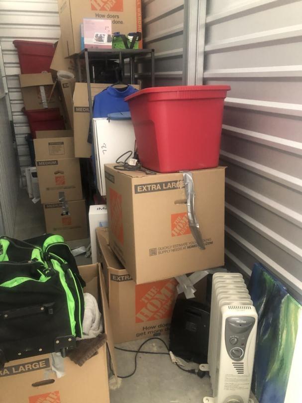 This unit appears to contain…This unit seems to contain :6 plastic containers,12 Misc boxes,2 computer boxes,1 computer desk.