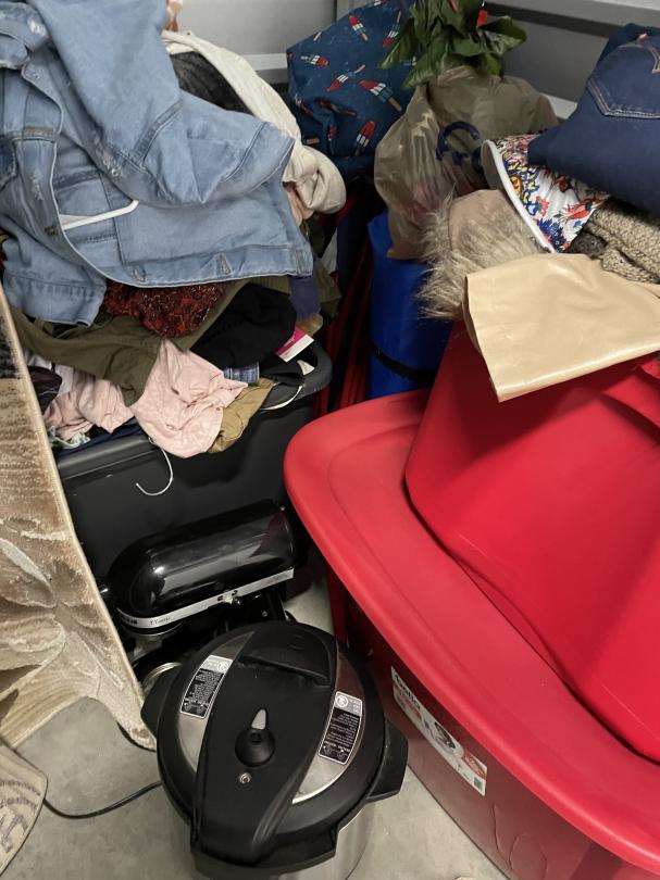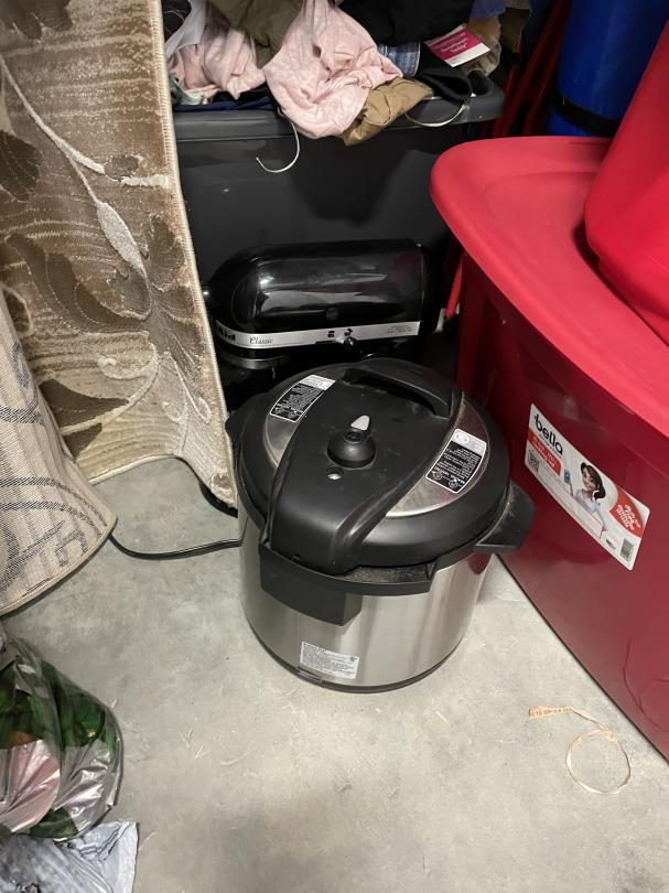 This unit appears to contain…Kitchen Aid Mixer Area Rug Folding Chair Pressure Cooker Hanging Clothes Misc. Totes False Flowers Ozark Trails 12x9 Screen House Laundry Basket Christmas Decorations