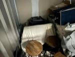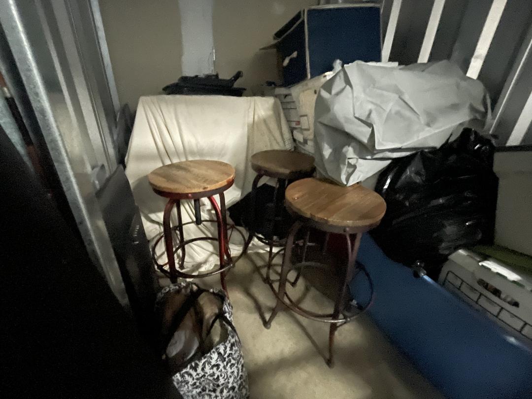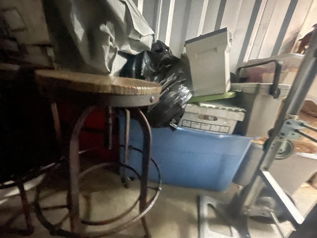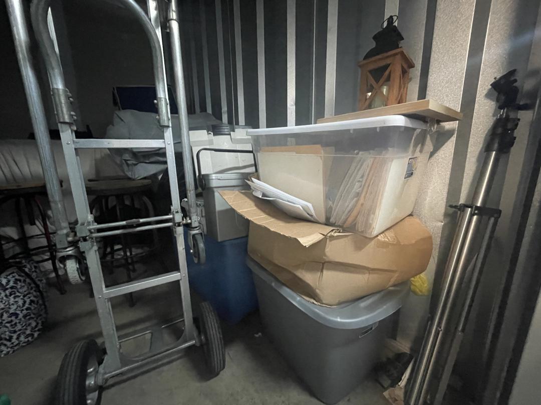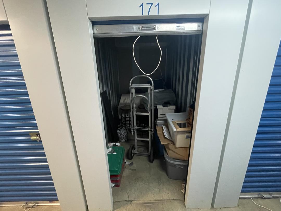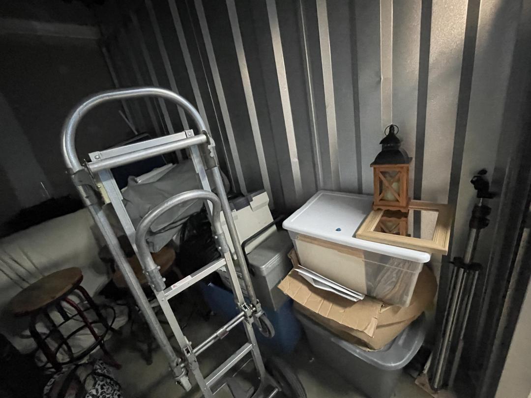 This unit appears to contain…This unit contains a tripod, boxes, totes, stools, and a dolly.