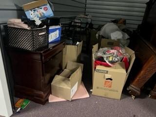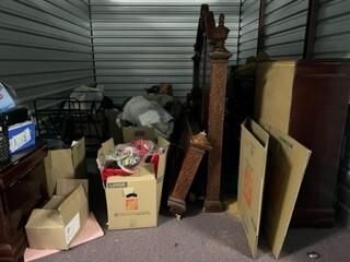 This unit appears to contain…Bed frame, headboard, dressers, boxes, totes.