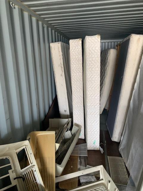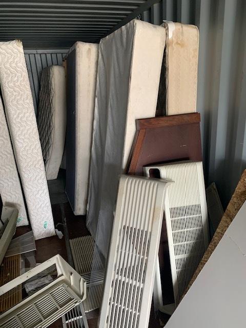 This unit appears to contain…Lawnmower, Mattresses, Plywood, Mirrors.