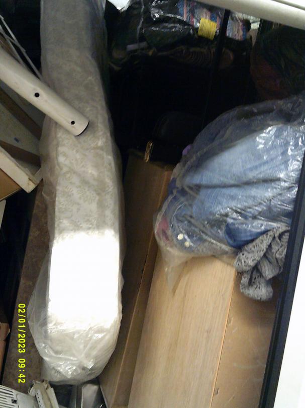 This unit appears to contain…READ ALL AUCTION RULES BEFORE BIDDING!!! Unit appears to contain: Ac units, stroller, bed frame, mattress, bedroom set, chairs, tables, art/decor, suitcases, Sony speaker system, clothing, bags, boxes, totes