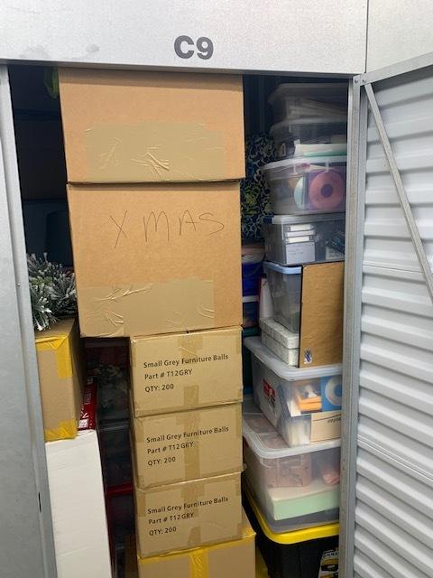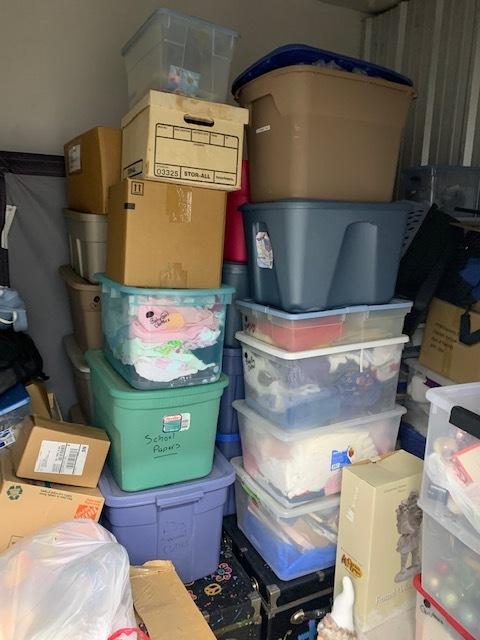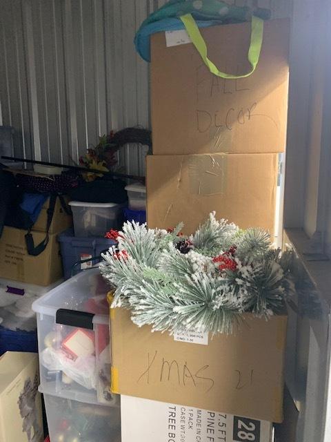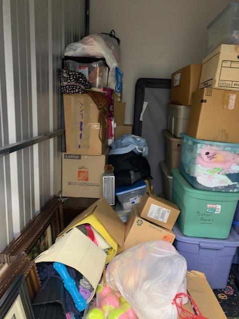 This unit appears to contain…Tubs, Boxes, Christmas Decor, Miscellaneous Household Items.