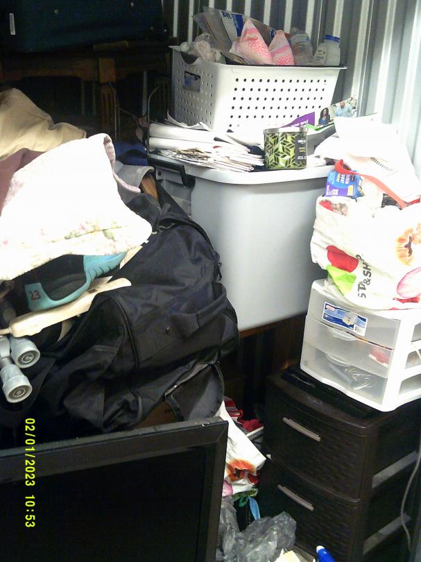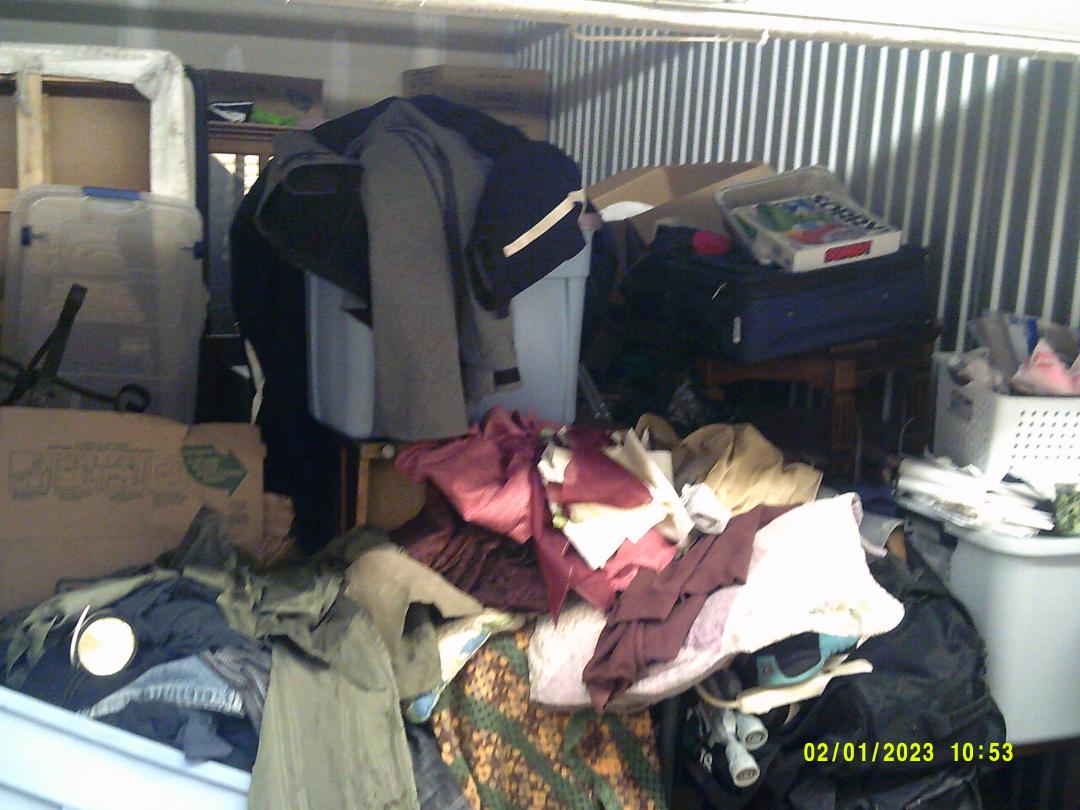 This unit appears to contain…READ ALL AUCTION RULES BEFORE BIDDING!!! Unit appears to contain: Totes bags, boxes, clothing, tv, display shelf, table, chairs, end stands, patio set, mattress, box spring, games, toys