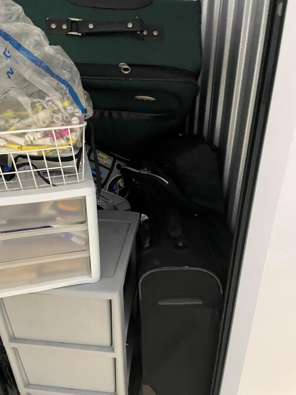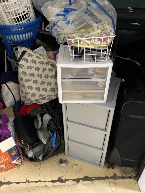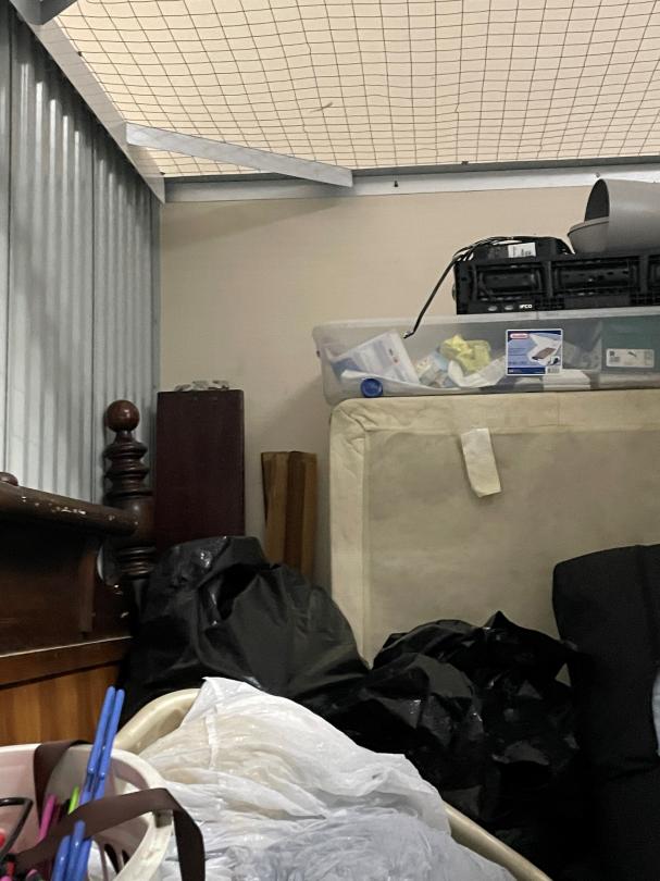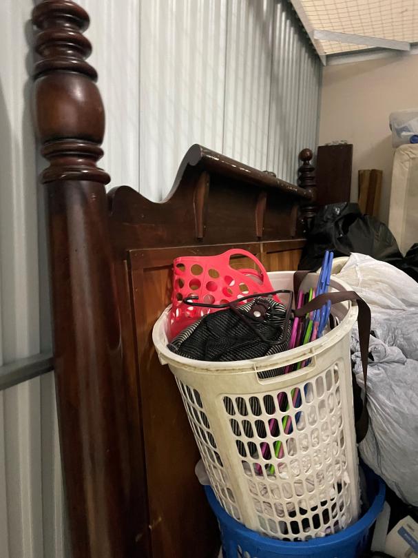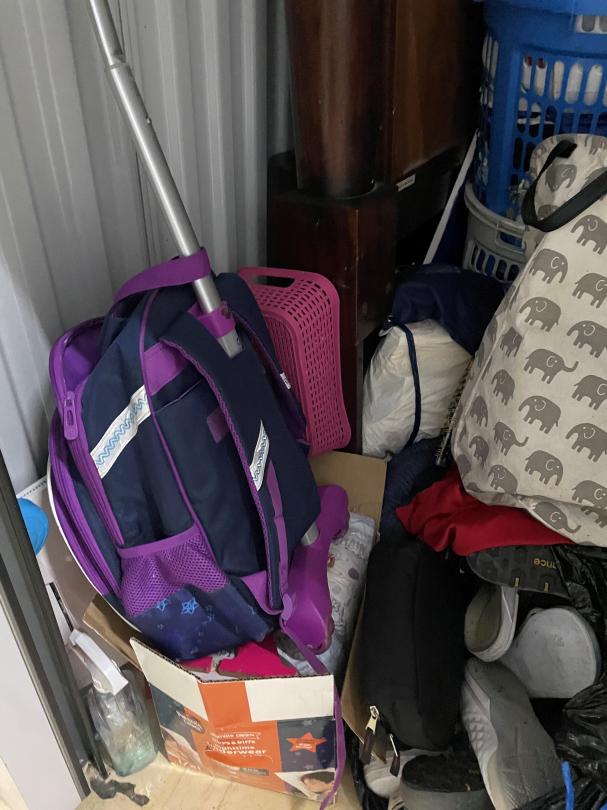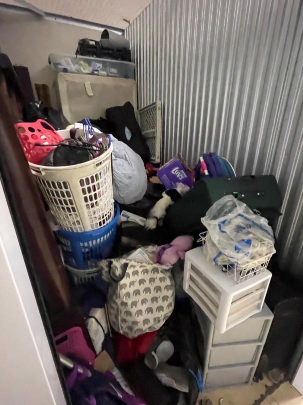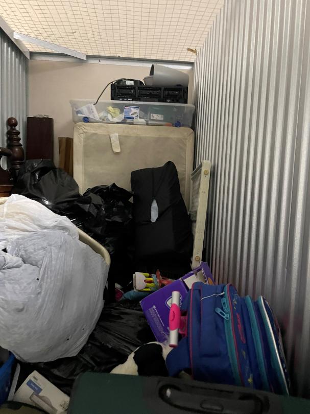 This unit appears to contain…clothes furniture household goods