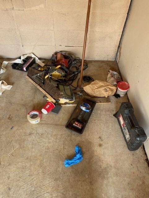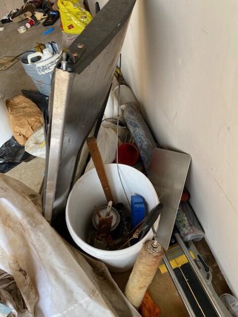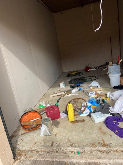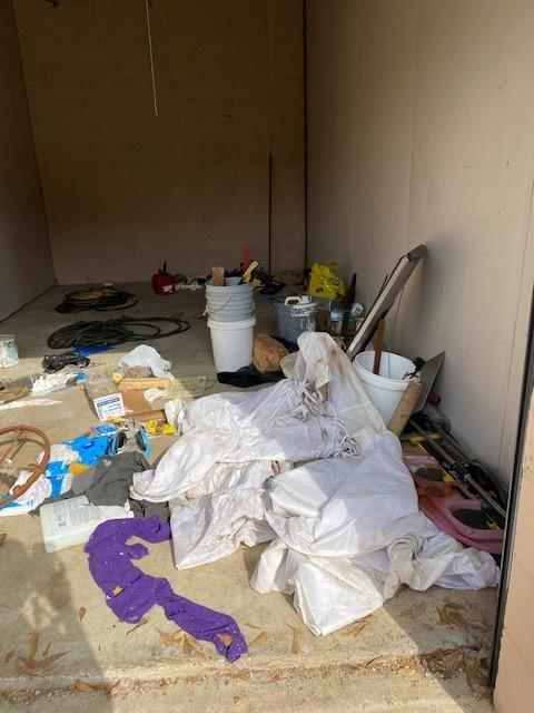 This unit appears to contain…This unit appears to contain painting equipment, gas cans, hoses, painting tarps, some tools