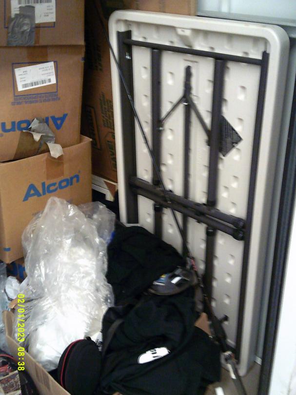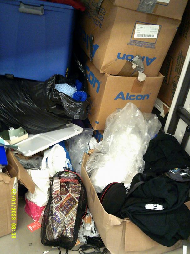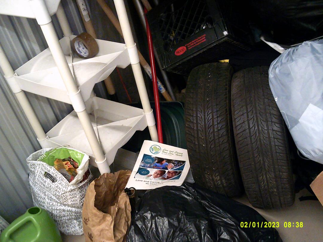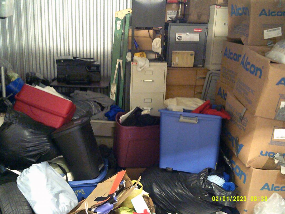 This unit appears to contain…READ ALL AUCTION RULES BEFORE BIDDING!!! Unit appears to contain: Safe, file cabinets, folding table, fishing poles, tires, shelf unit, dresser, boxes, bags, totes, printer, cooler, lamps, flat screen tv