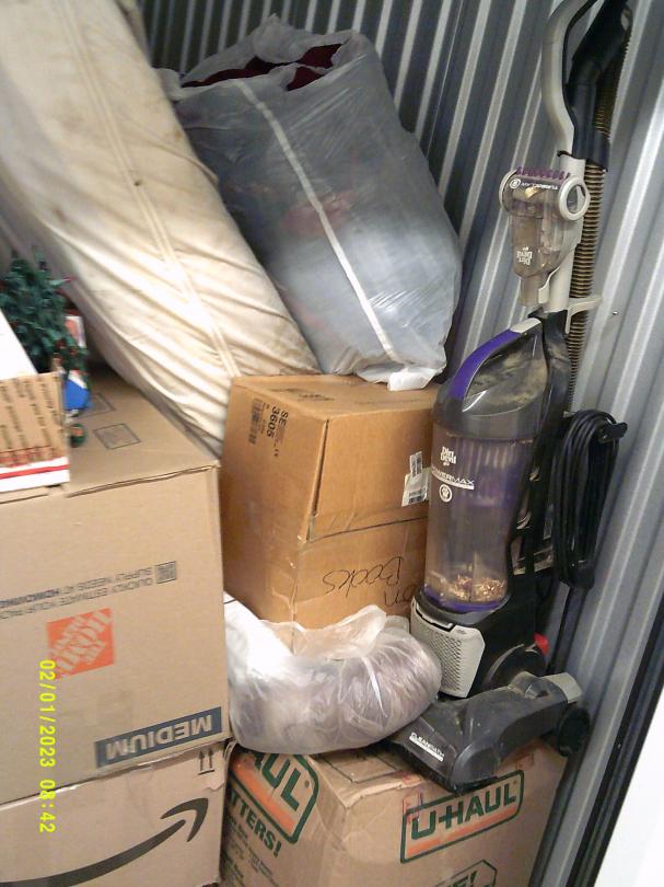 This unit appears to contain…READ ALL AUCTION RULES BEFORE BIDDING!!! Unit appears to contain: Vacuum, xmas decor, boxes, mattress/box spring, clothing, utility cart