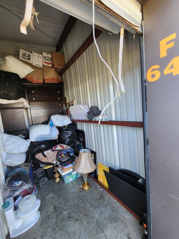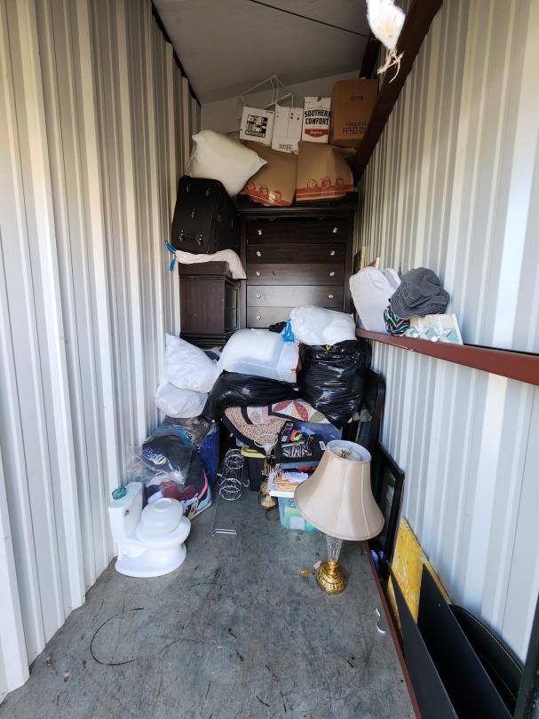 This unit appears to contain…Dresser, end tables, clothes, bags, house hold items, other misc. This unit is located at 500 East Railroad St. Long Beach MS 39560