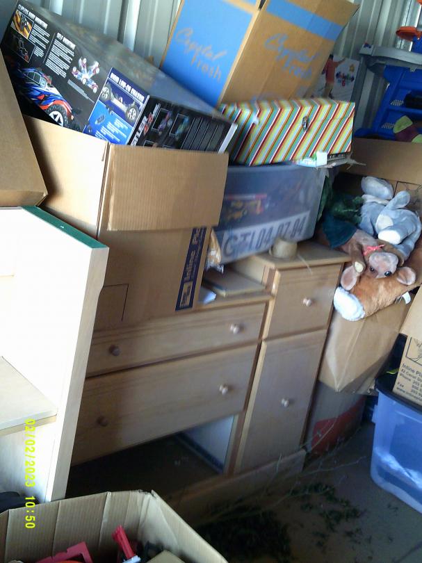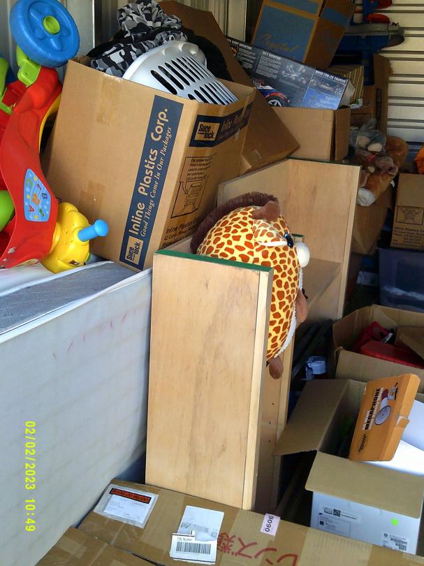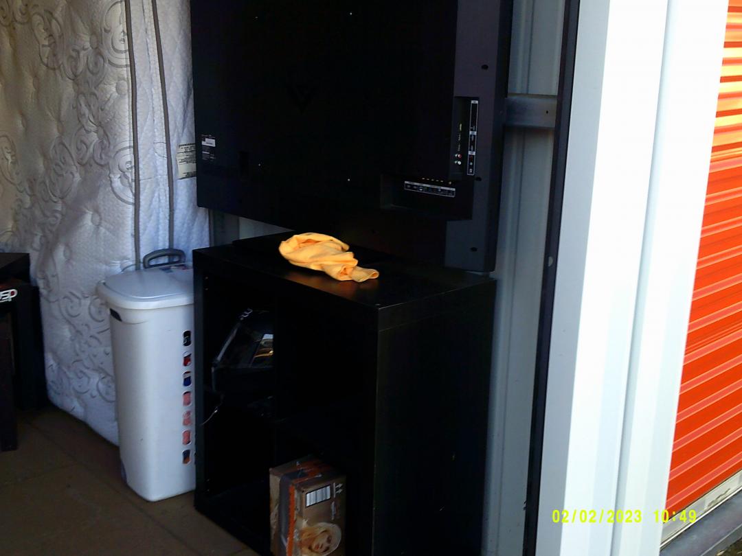 This unit appears to contain…READ ALL AUCTION RULES BEFORE BIDDING!!! Unit appears to contain: Flat screen tv, stacking tables, mattress, box springs, tv stand, cube shelf, dresser, RC cars, totes, bags, boxes