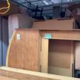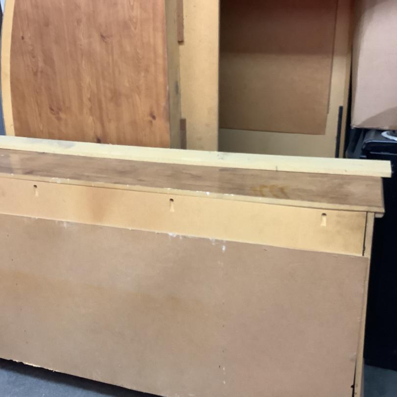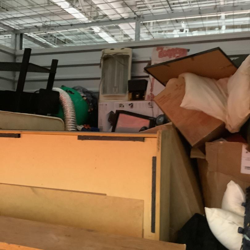 This unit appears to contain…Heater, dressers, pillows, stove, headboard, mattress, bed rails, box spring, shelves