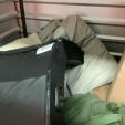This unit appears to contain…Chair, tv, cabinet, book bag, boxes, lamp, pillow
