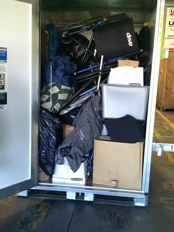 This unit appears to contain…READ ALL AUCTION RULES BEFORE BIDDING!!! Unit appears to contain: Wheelchair, walker, totes, bags, boxes