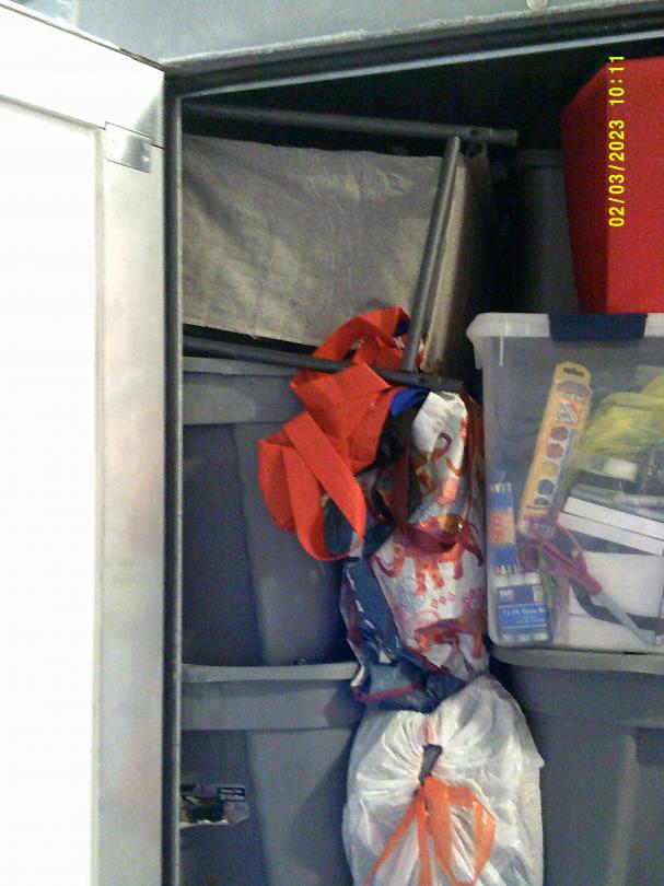 This unit appears to contain…READ ALL AUCTION RULES BEFORE BIDDING!!! Unit appears to contain: Chest freezer, books, totes, laundry sorter, bags, boogie board