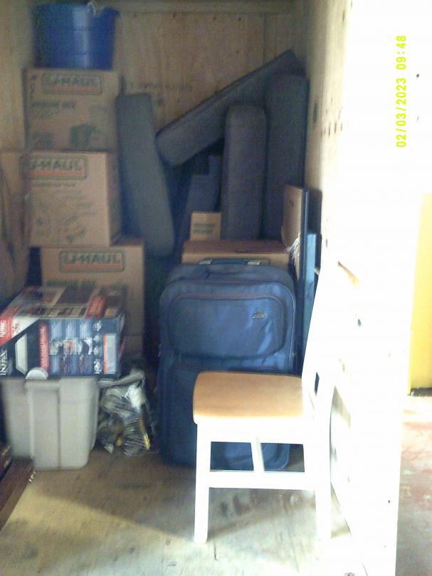 This unit appears to contain…READ ALL AUCTION RULES BEFORE BIDDING!!! Unit appears to contain: Chair, couch, suitcase, boxes, art, table, totes, bin