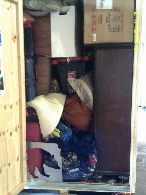 This unit appears to contain…READ ALL AUCTION RULES BEFORE BIDDING!!! Unit appears to contain: Totes, furniture, boxes, blankets, toolbox, pillows