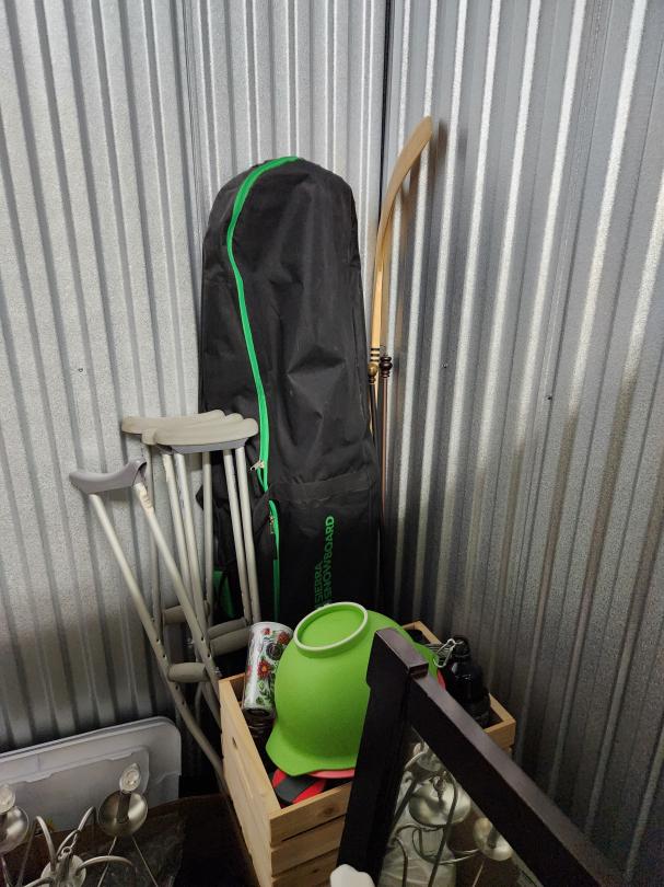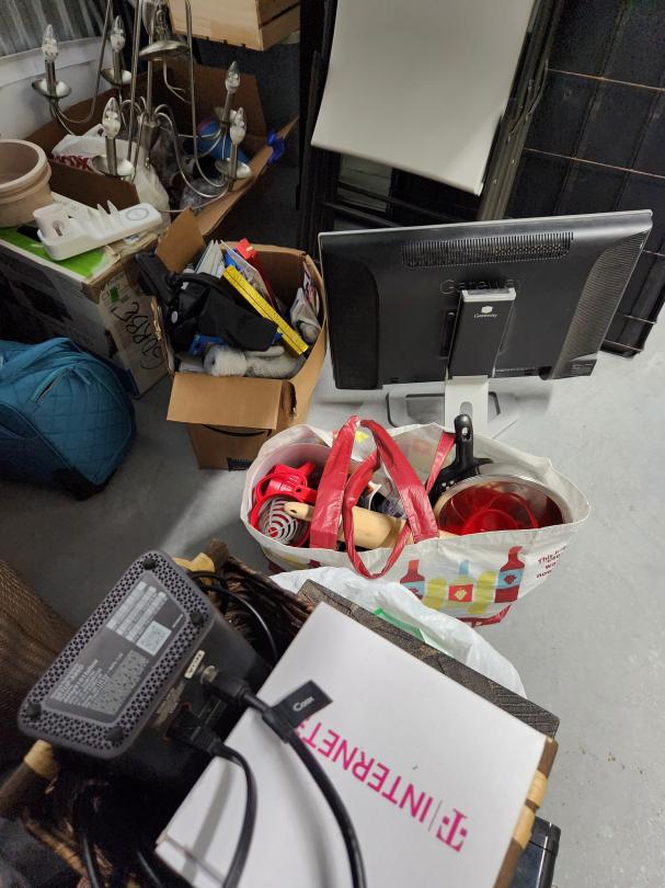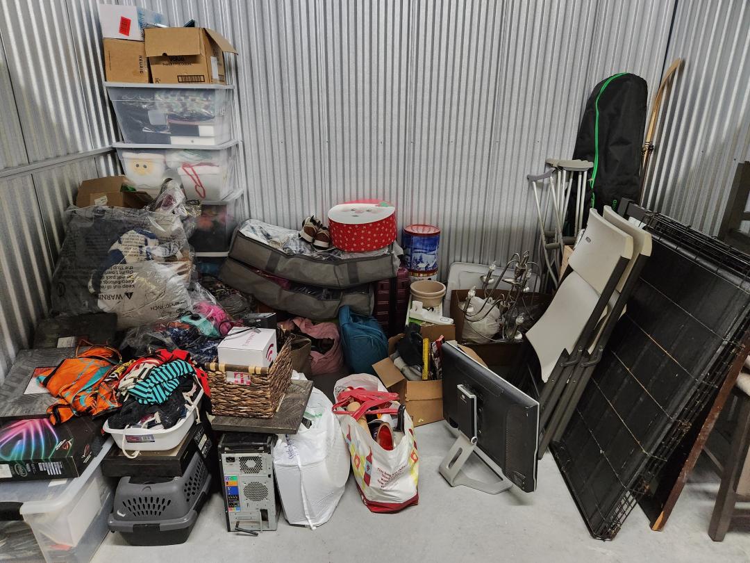 This unit appears to contain…BAGS/BINS/SHOES/PC MONITOR/ICE HOCKEY STICK/PC TOWER/TV/CHAIRS/CLOTHES/ANIMAL CARRIER