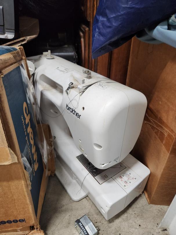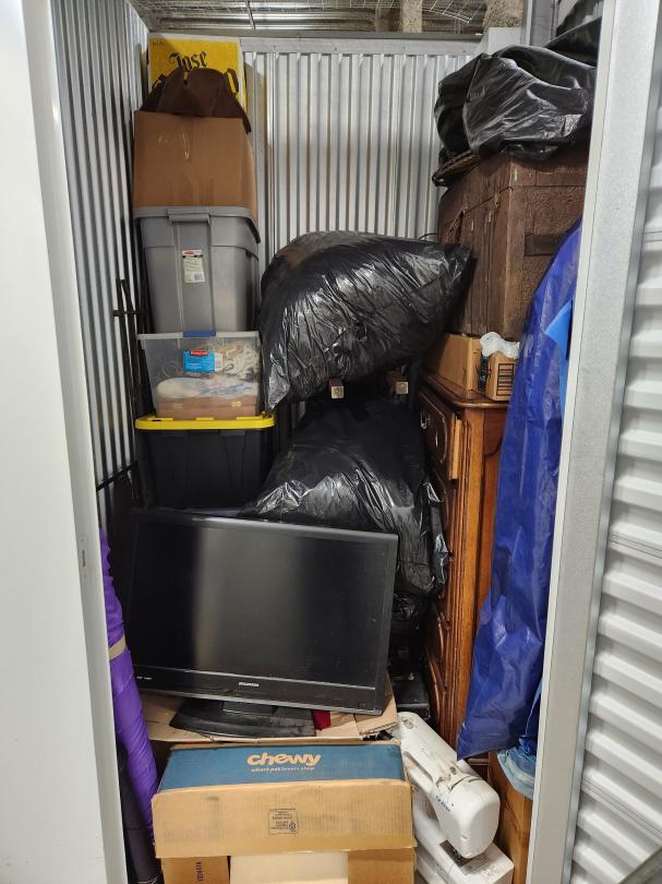 This unit appears to contain…BAGS/BINS/BOXES/SYLVANIA TV/BROTHER SEWING MACHINE/DRESSER/TOTES