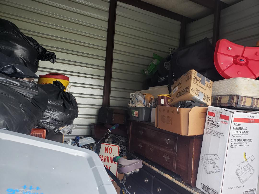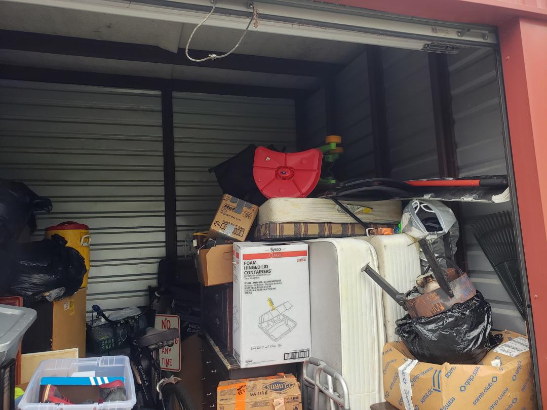 This unit appears to contain…Bikes,Mattresses,Box Springs,Dressers or Armoire,Nightstands,Plastic Bags,Plastic Containers,Misc. Boxes,Misc. Items,Coolers