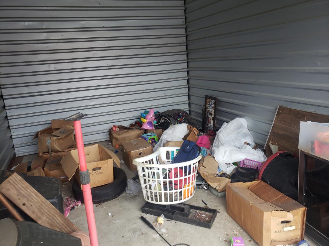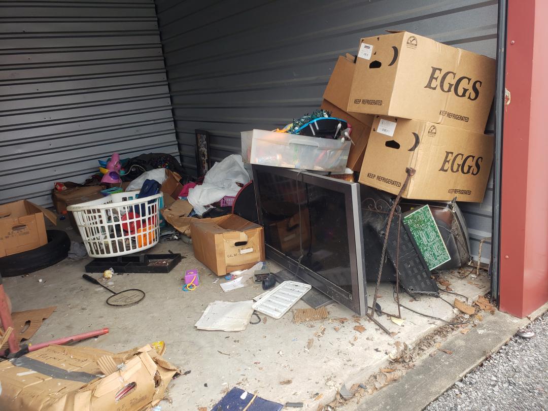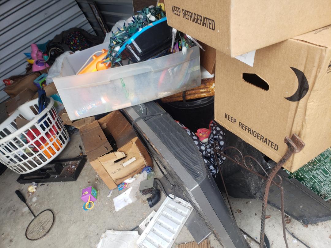 This unit appears to contain…TV,Plastic Bags,Misc. Boxes
