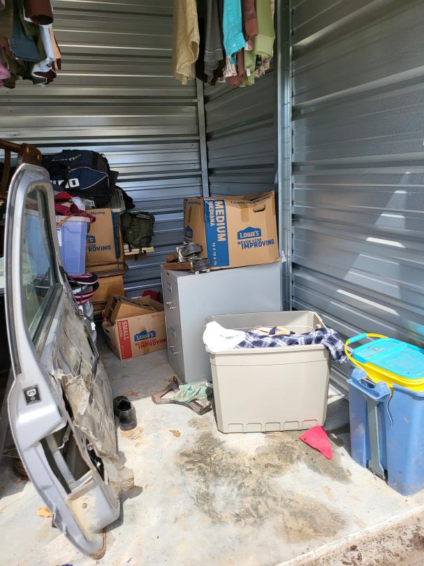 This unit appears to contain…10x10 unit containing car door, wine fridge, furniture, & clothing.
