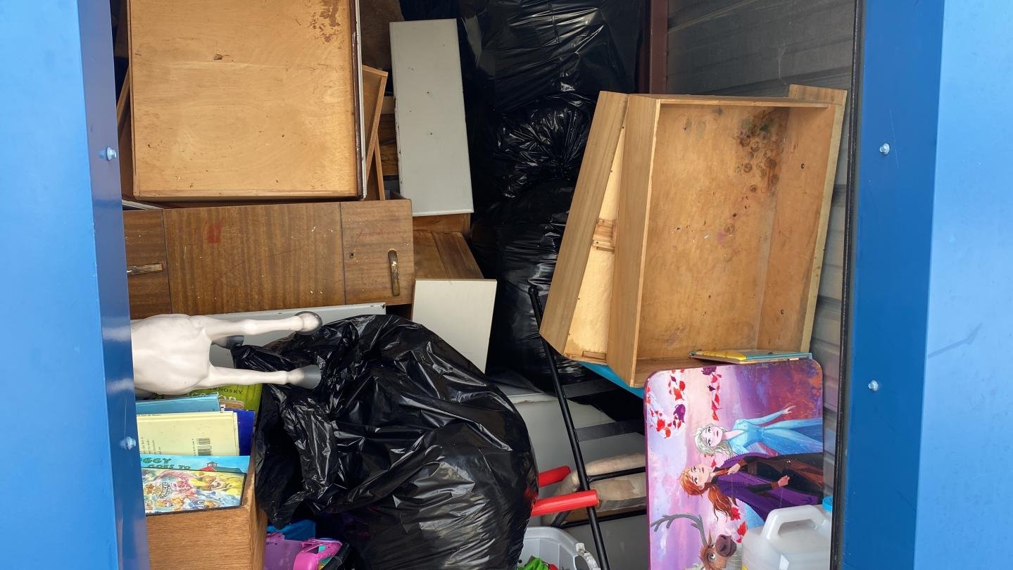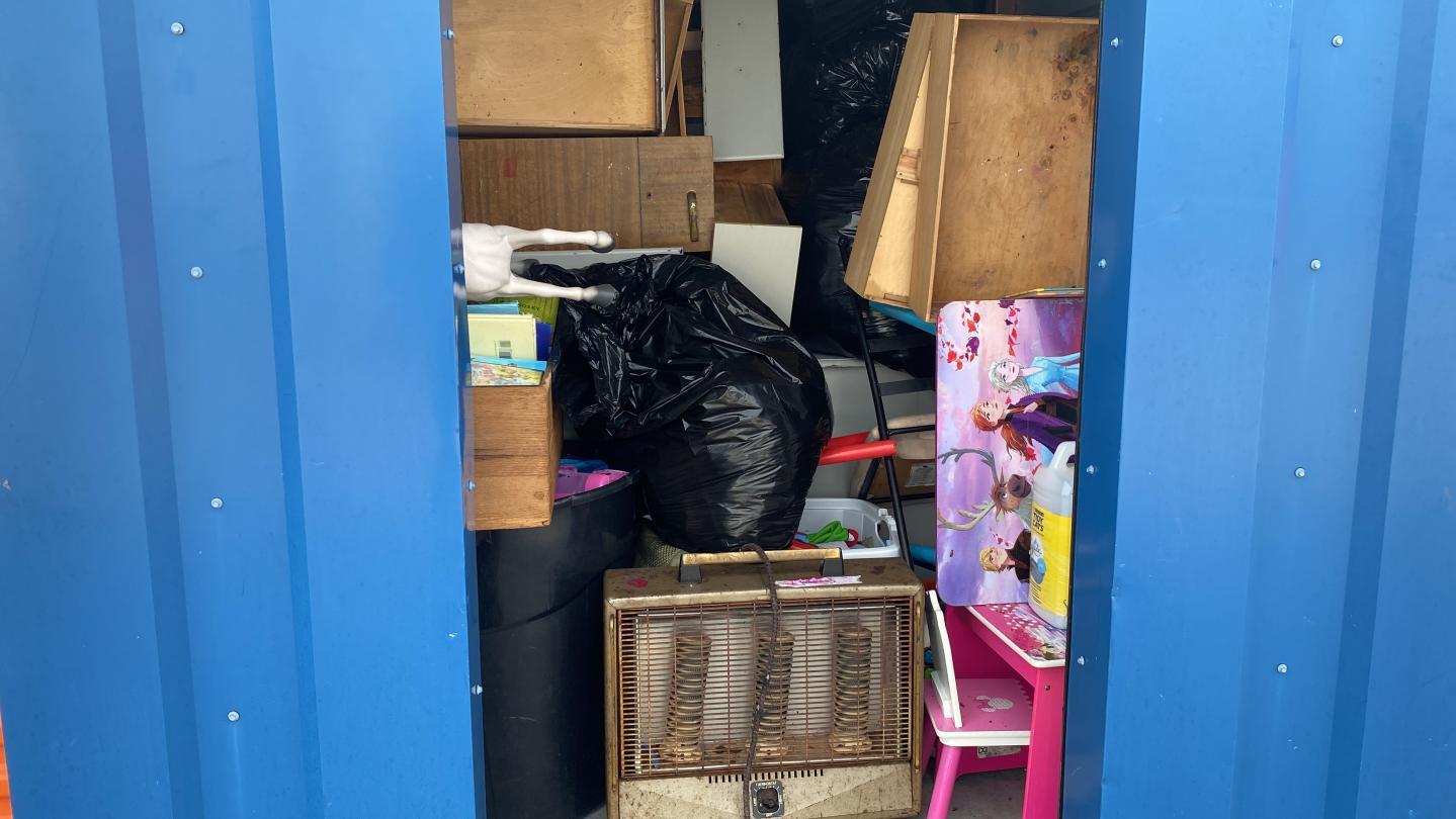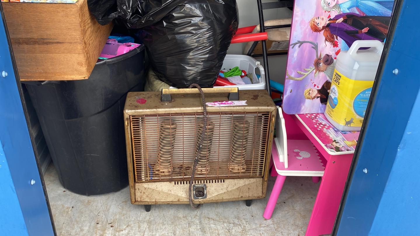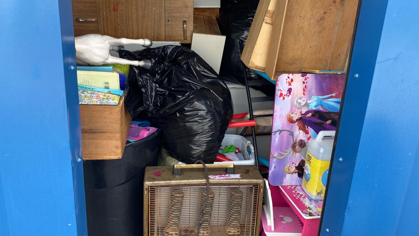 This unit appears to contain…Electric Heater, Dresser, Toys, Books, Child Desk/ Furniture, Bags, Stuffed animals