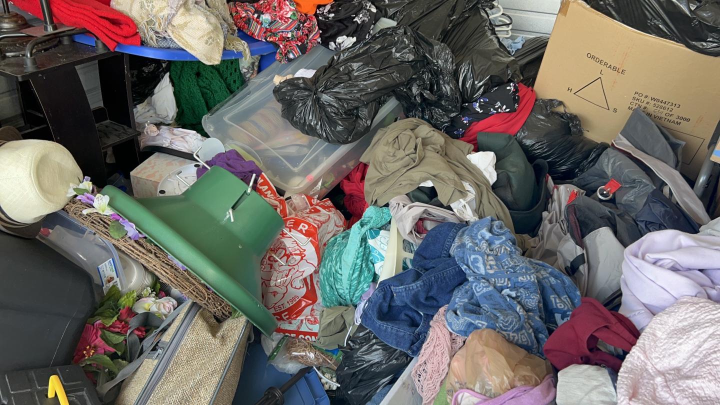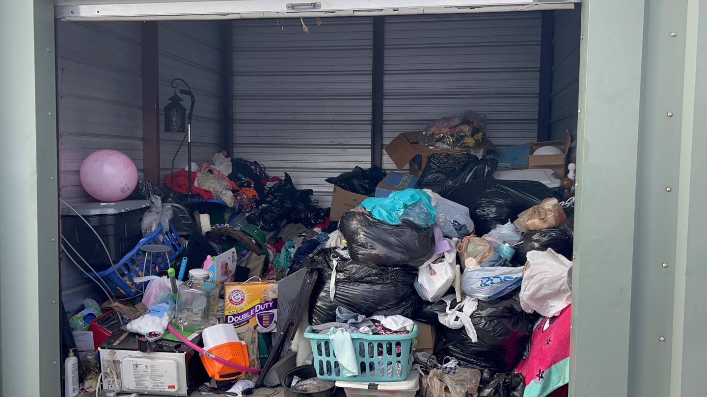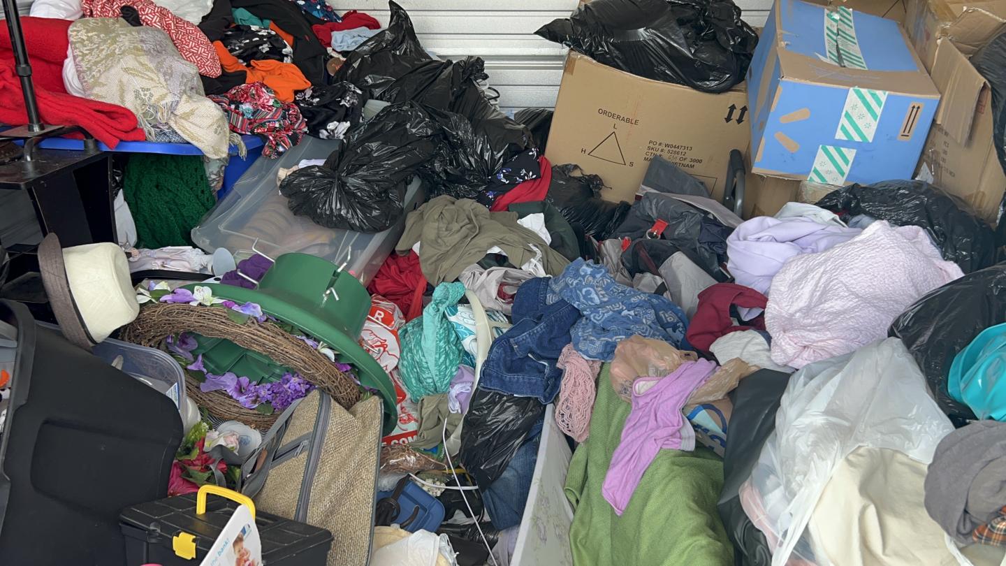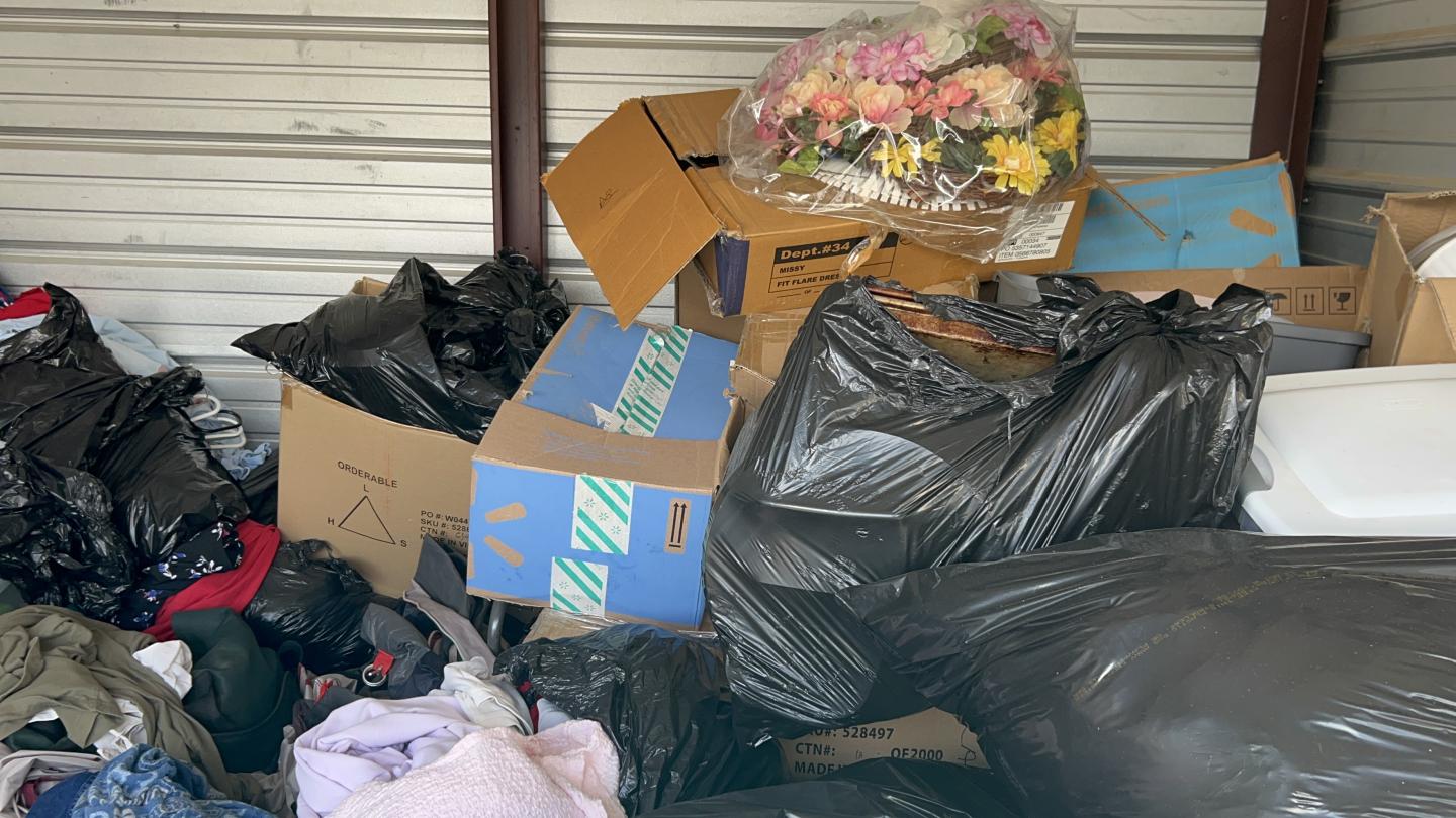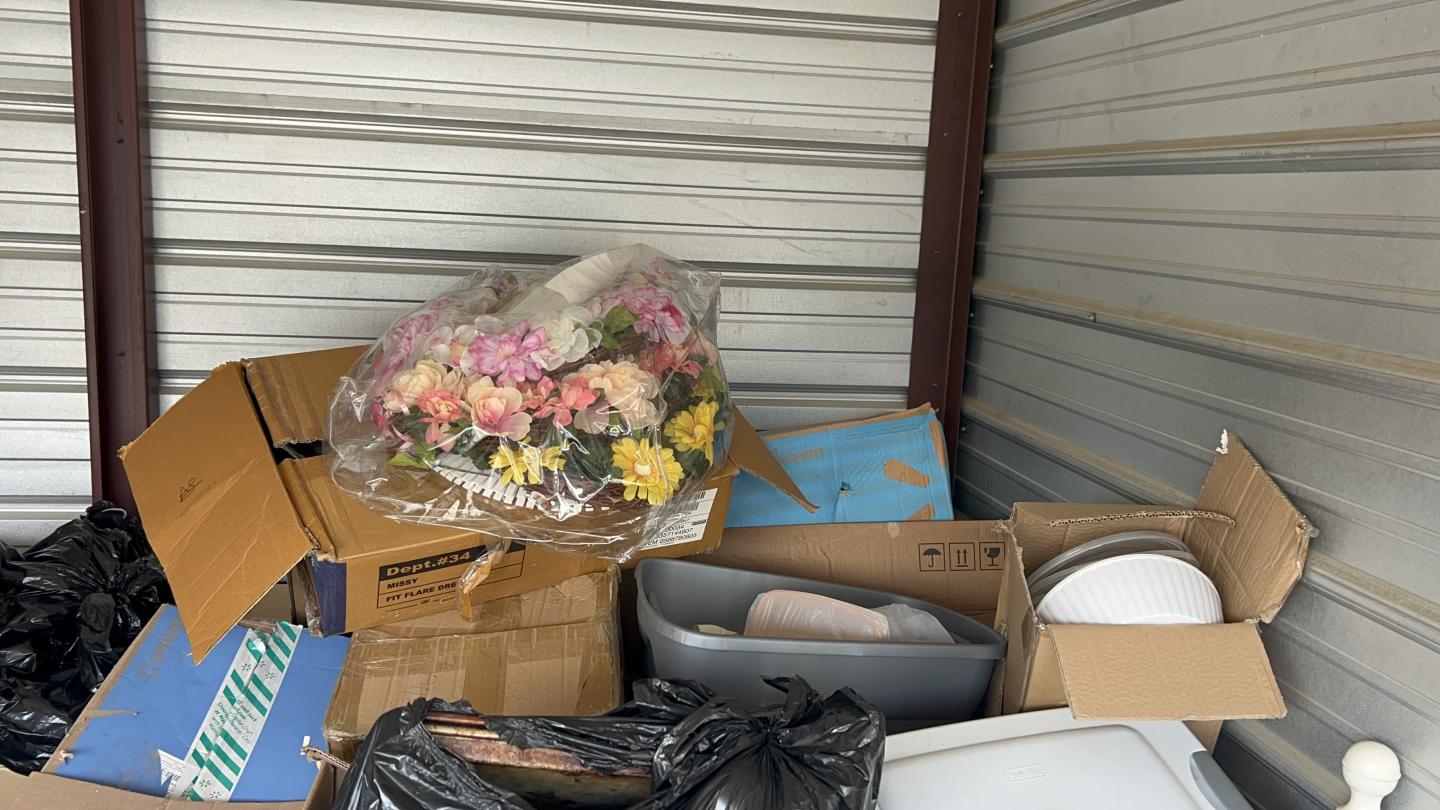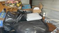 This unit appears to contain…Headboards, Bags, Lamps, Fishing poles, Clothes, Home Decor, Cookware, Bedframe, Shoes, Folding Table, Toaster, TV household items