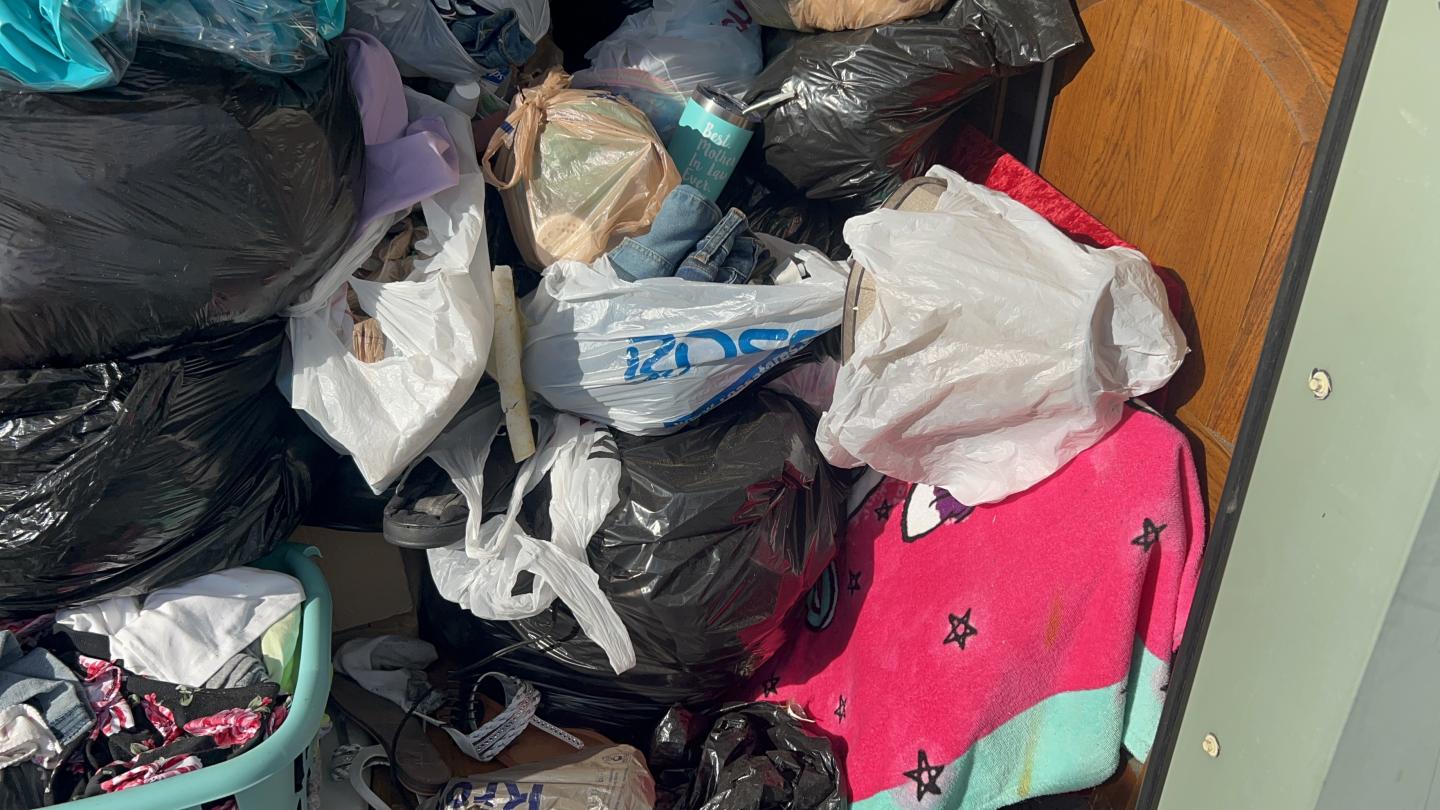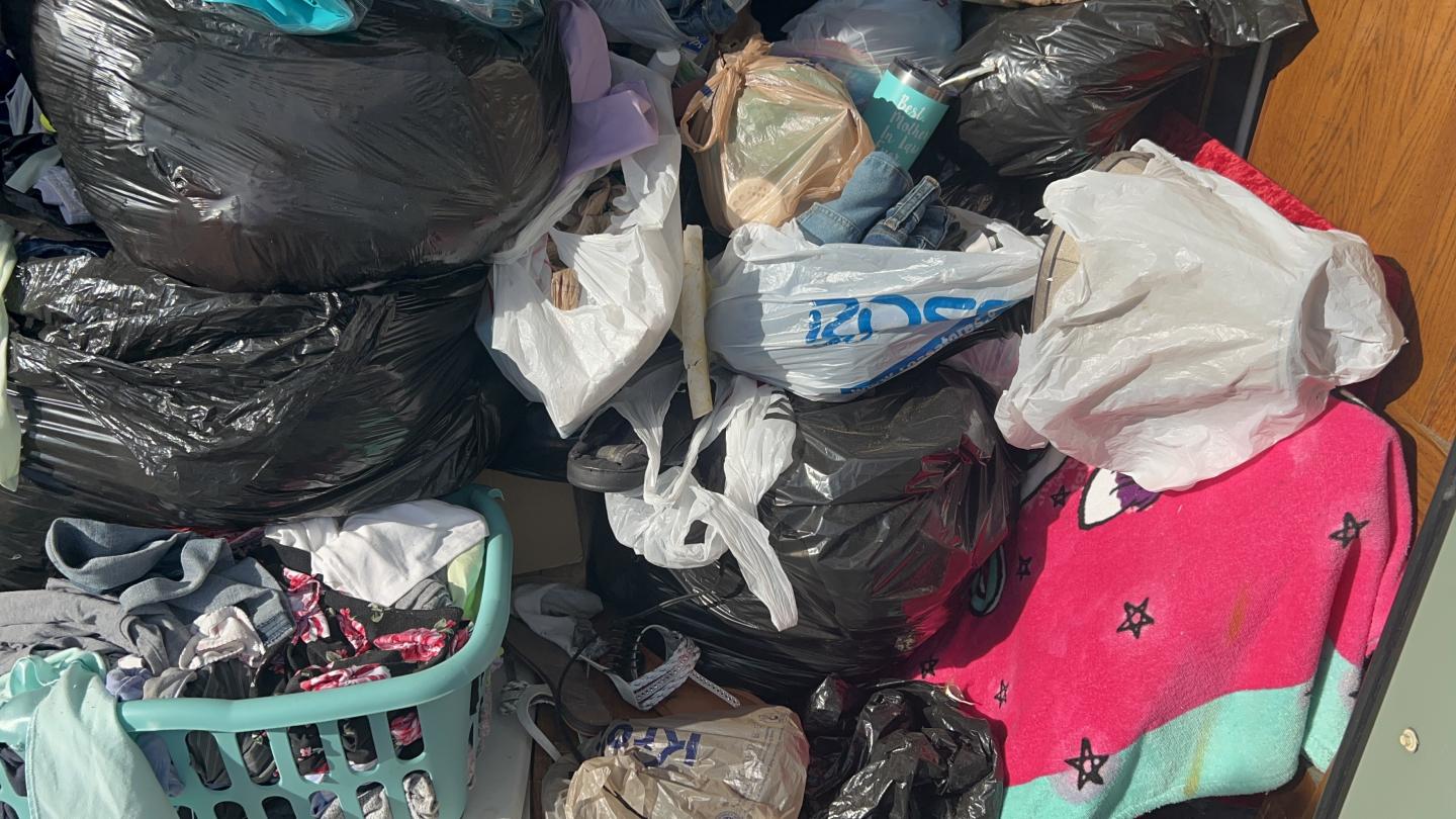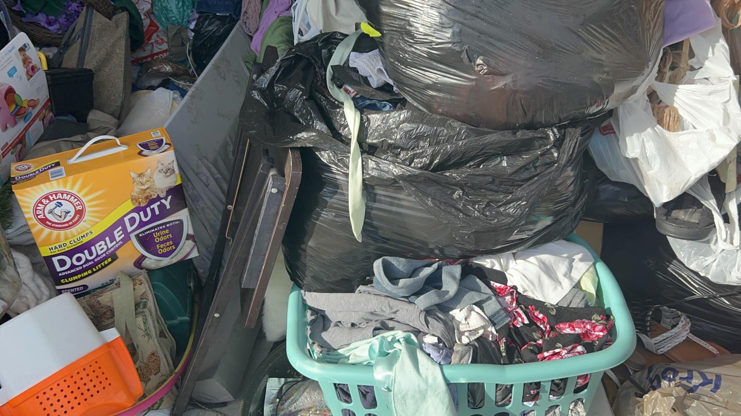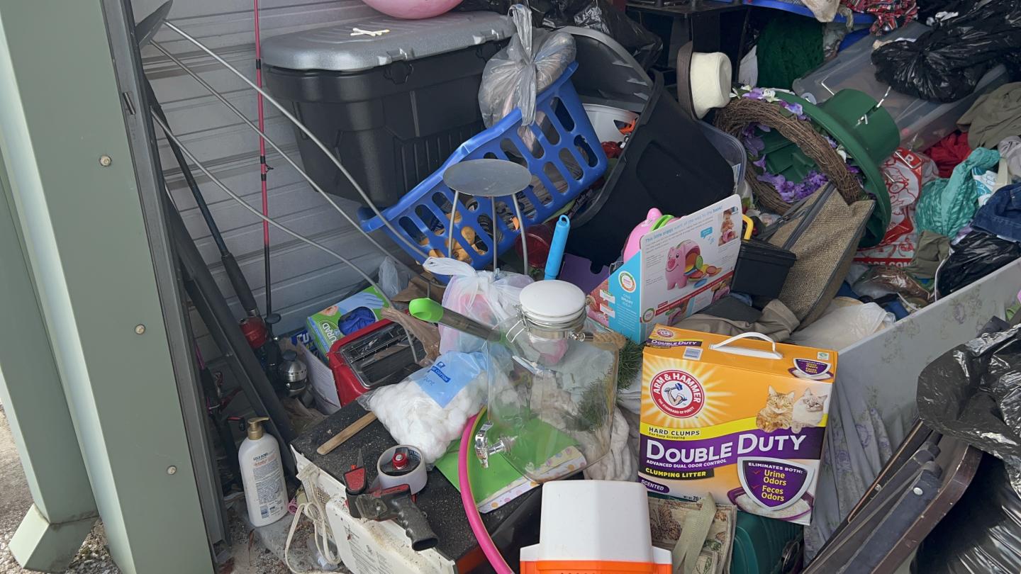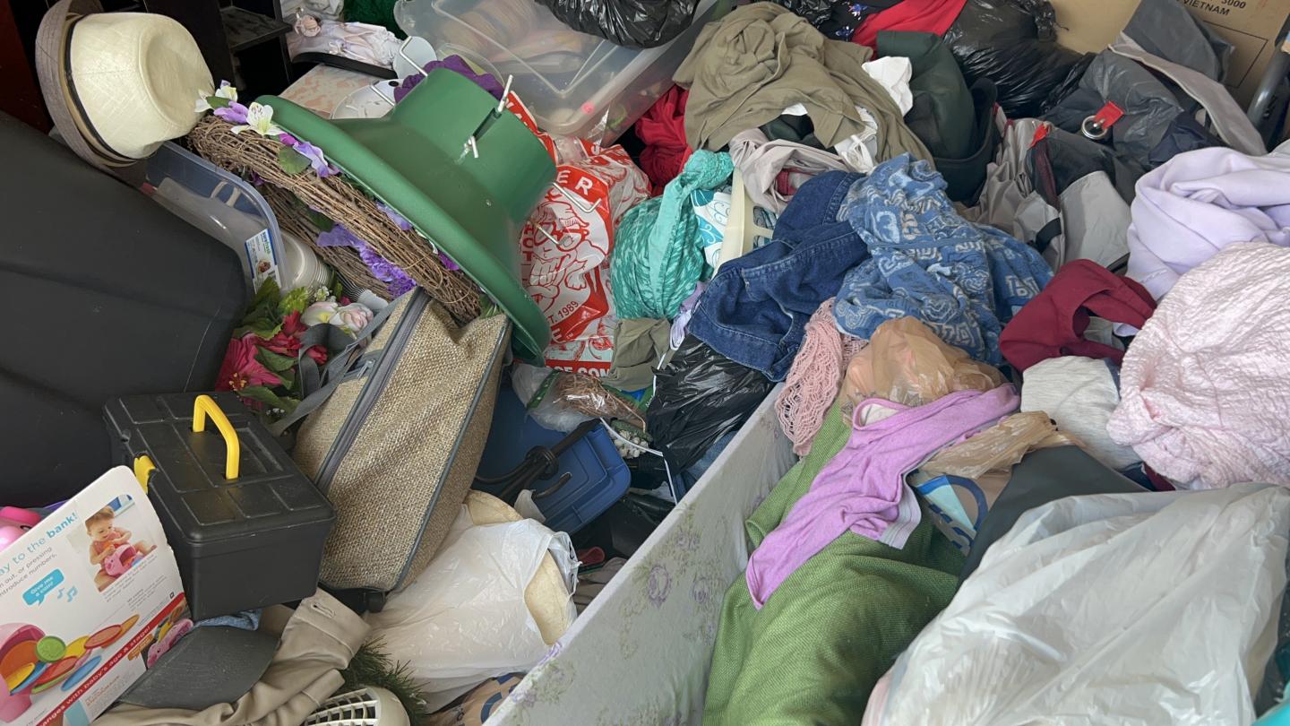 This unit appears to contain…Headboards, Bags, Lamps, Fishing poles, Clothes, Home Decor, Cookware, Bedframe, Shoes, Folding Table, Toaster, TV household items