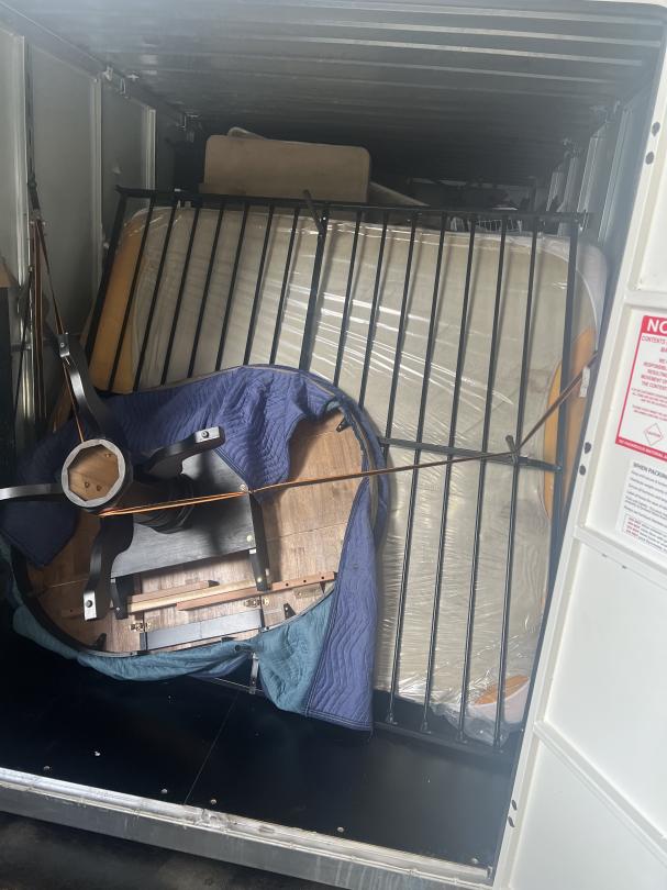 This unit appears to contain…Dining table, mattress/frame, box spring, chair(s), household items, lamp, miscellaneous......FULL container, don't miss out on this one!
