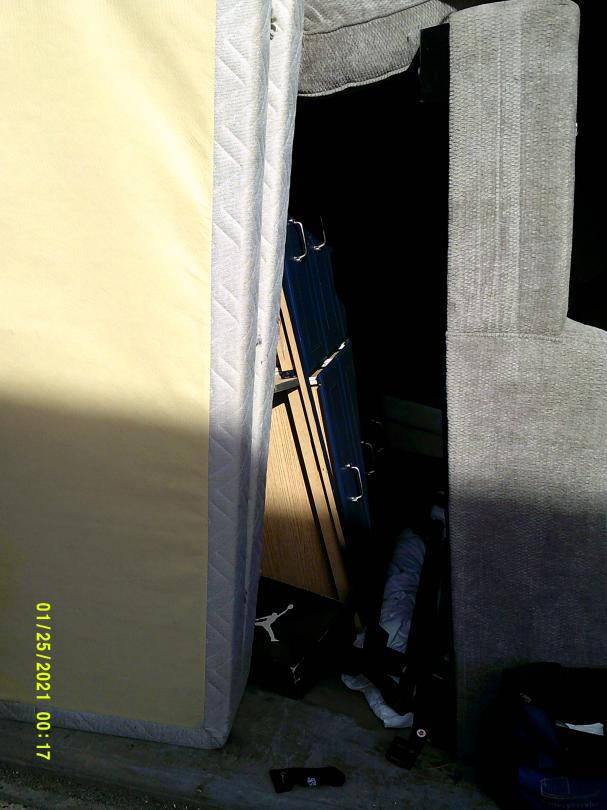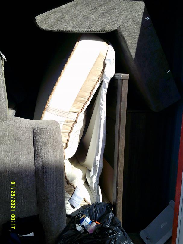This unit appears to contain…READ ALL AUCTION RULES BEFORE BIDDING!!! Unit appears to contain: Living room set, bedroom set, box spring, mattress, bags, boxes, totes, bed frame