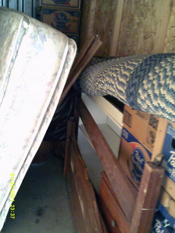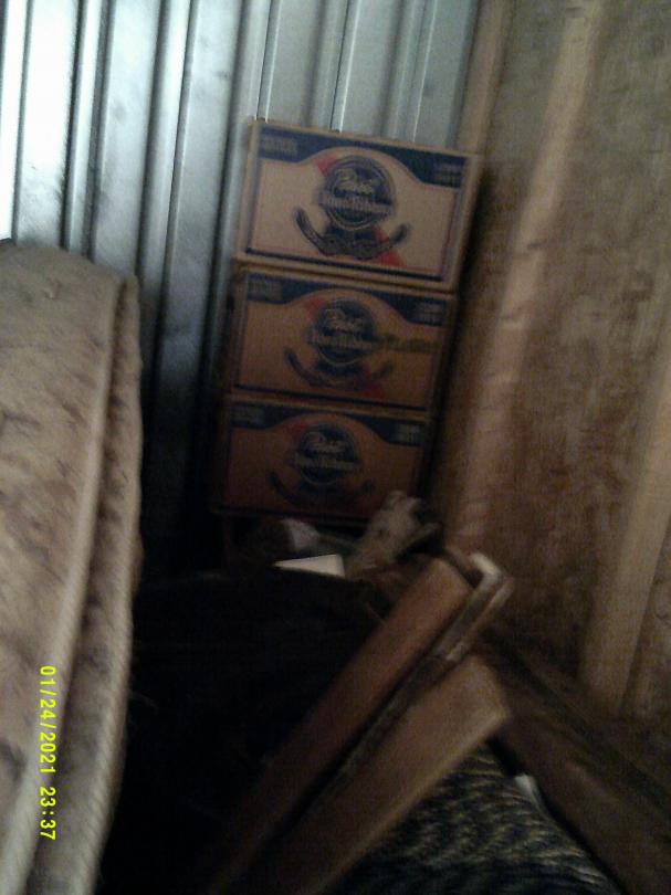 This unit appears to contain…READ ALL AUCTION RULES BEFORE BIDDING!!! Unit appears to contain: Pabst boxes, shelf unit, mattress, box spring, bed frame, boots