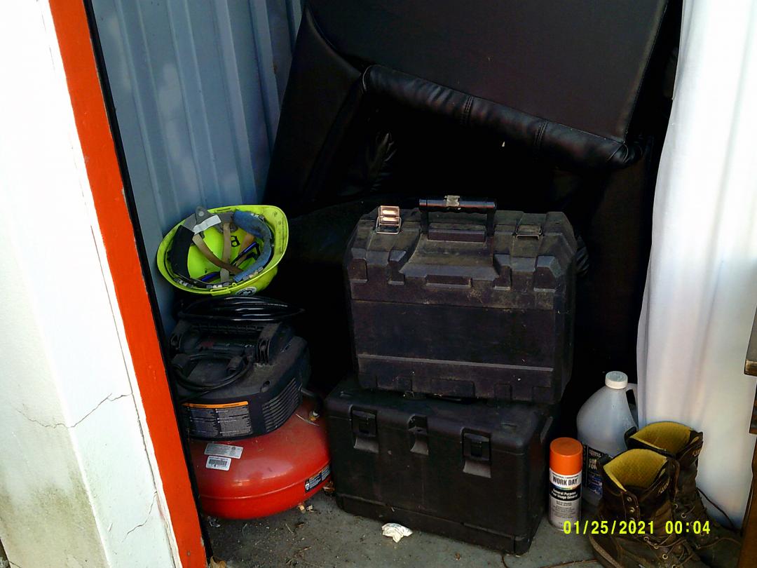 This unit appears to contain…READ ALL AUCTION RULES BEFORE BIDDING!!! Unit appears to contain: Tools, tool boxes, air compressor, chairs, living room set, bedroom set, totes, bags, boxes, desk, decor, dining room set, clothing, shoes