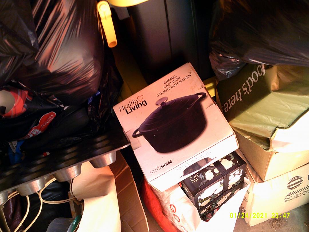 This unit appears to contain…READ ALL AUCTION RULES BEFORE BIDDING!!! Unit appears to contain: Dutch oven, bags, boxes, totes, boots