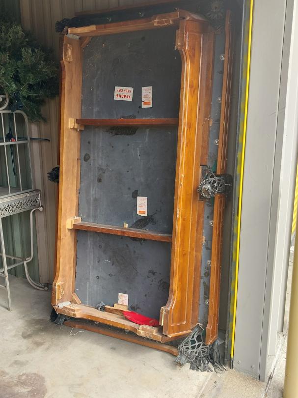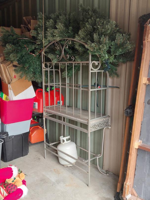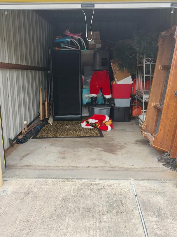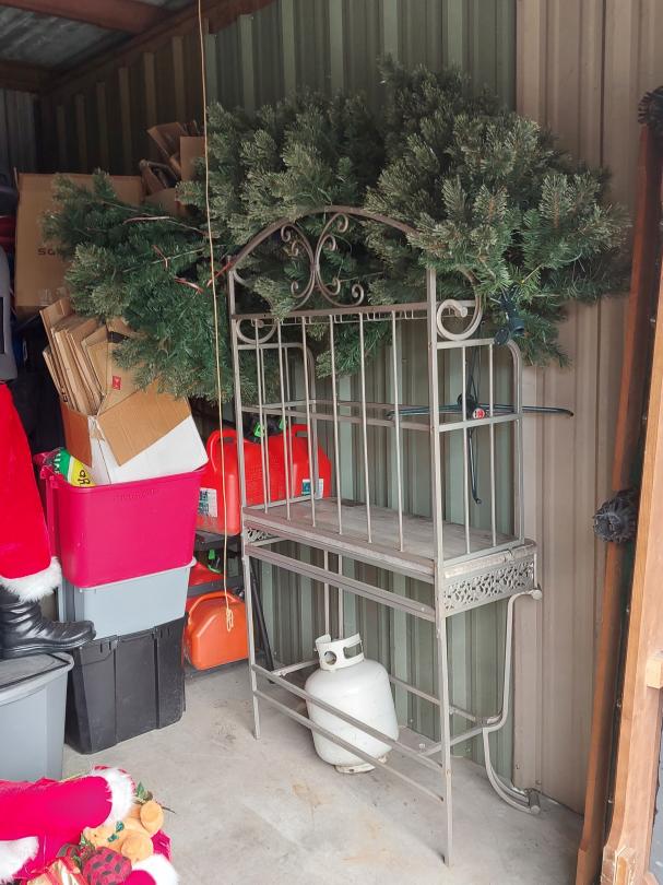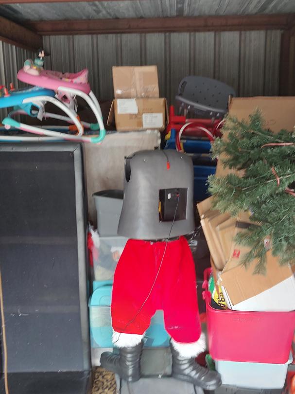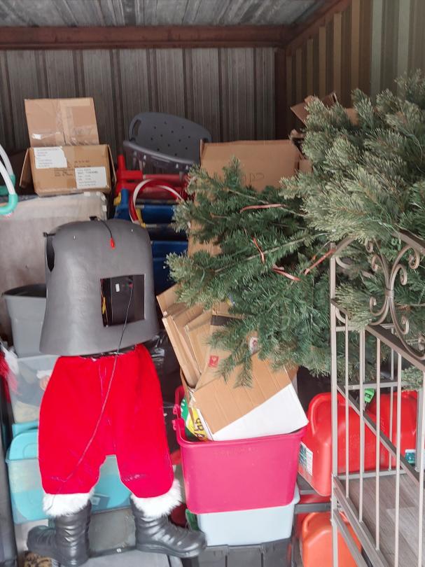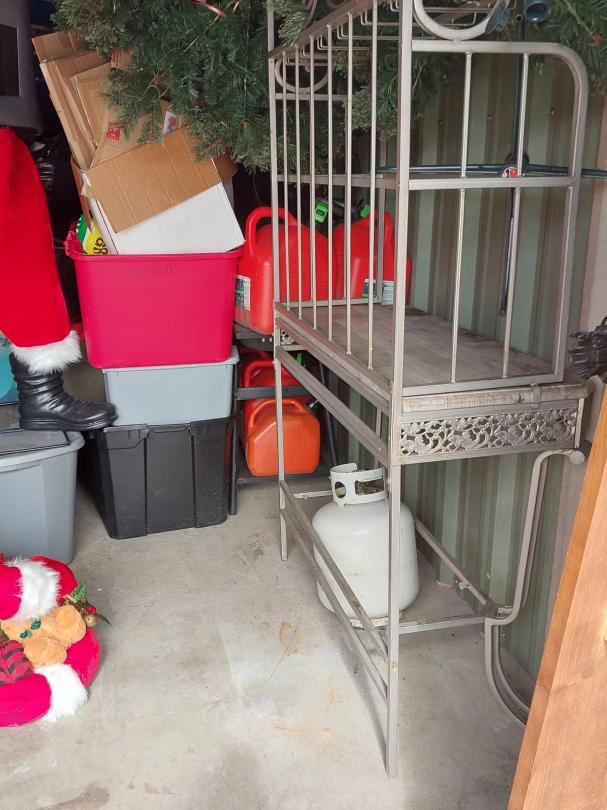 This unit appears to contain…10X20X8 Mattress, Bed Rails, Totes, Gas Can, Pool Table, Toys, Sofa, Box Spring, Christmas Decoration, Propane Tank, Baker Rack, Christmas Tree, Kids Walker, Rug, Head & Foot Board