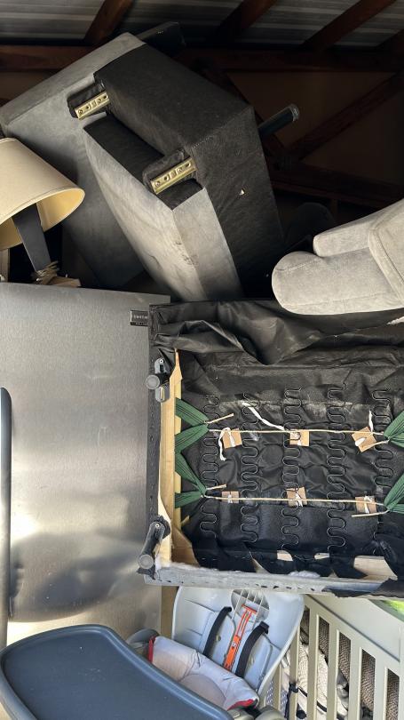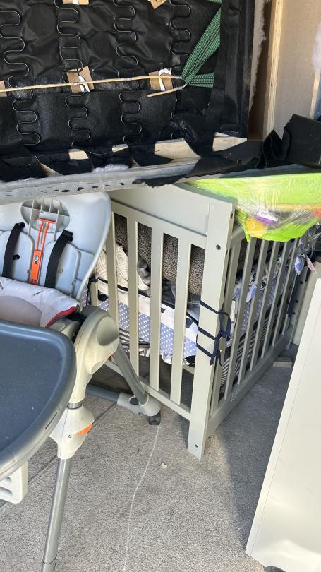 This unit appears to contain…Washer, dryer, refrigerator, couch. crib