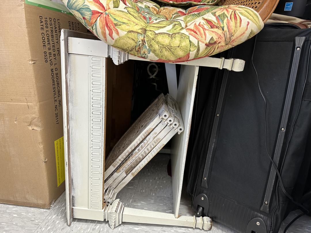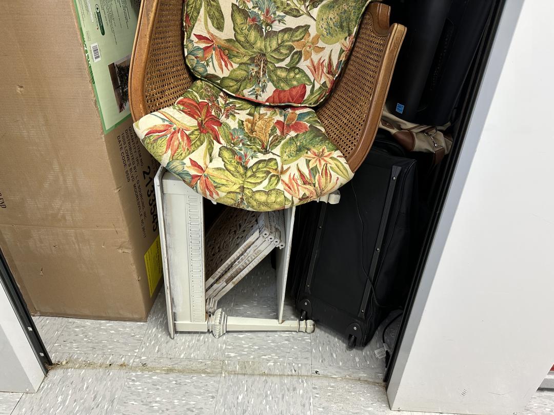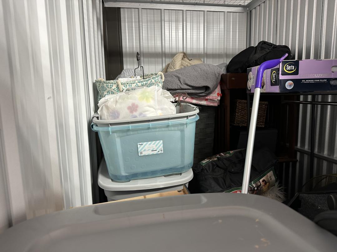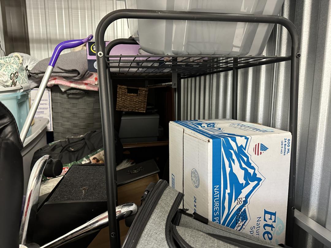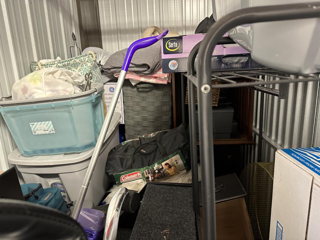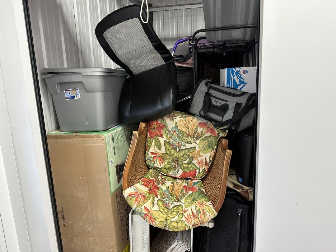 This unit appears to contain…Contents include: Chairs, Tables, bed frames, misc tubs and other household items.