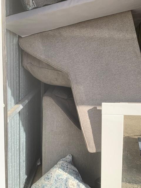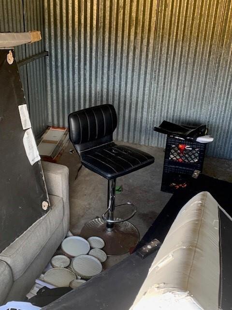 This unit appears to contain…BAR STOOLS, MIRROR, THROW PILLOWS, TV STAND, BED, DRESSER, CLOTHES, SOFA & LOVE SEAT