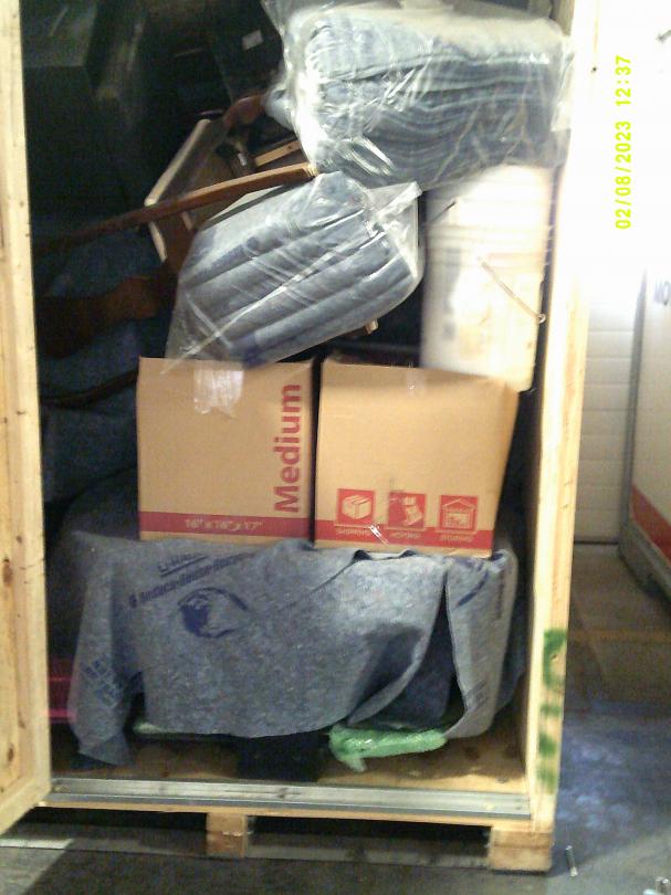 This unit appears to contain…READ ALL AUCTION RULES BEFORE BIDDING!!! Unit appears to contain: Table, chairs, ottoman, boxes, 5 gal buckets, 2x4's
