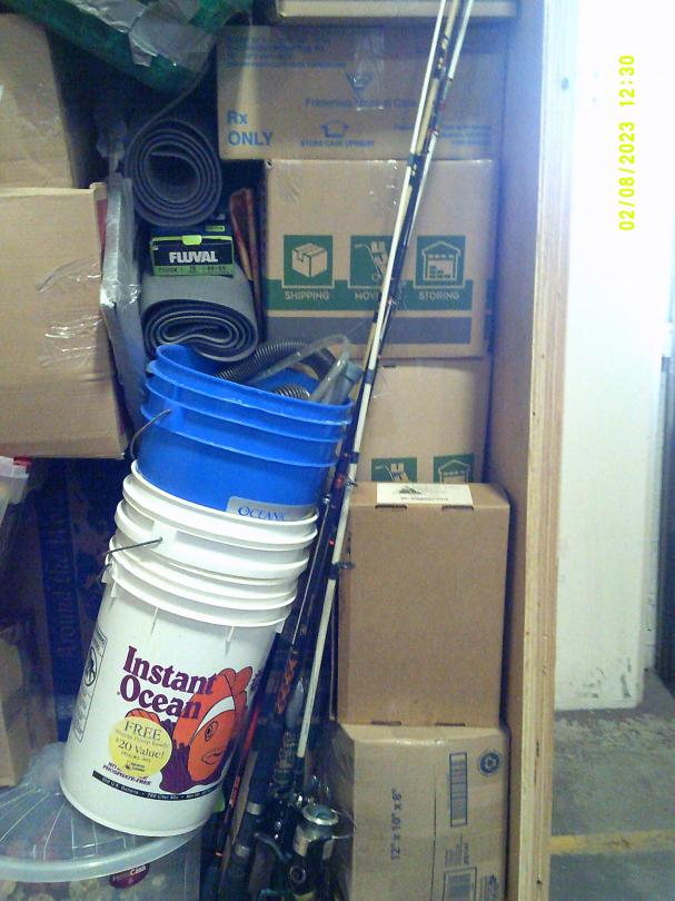 This unit appears to contain…READ ALL AUCTION RULES BEFORE BIDDING!!! Unit appears to contain: Fishing poles, 5 Gal buckets, boxes, fake coral, totes