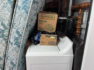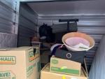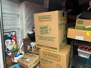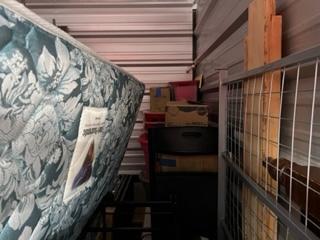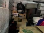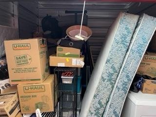 This unit appears to contain…Washer, Dryer, Coffee Maker, Bed frame, Mattress, Box Spring, Shelves, TV, Table, Desk, Fishing Pole, Boxex, Bags, Totes, Chairs, Misc Personal Items