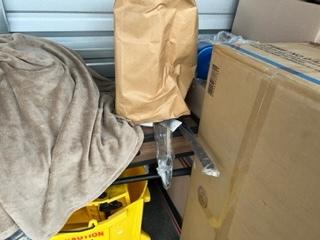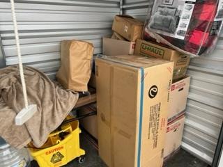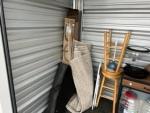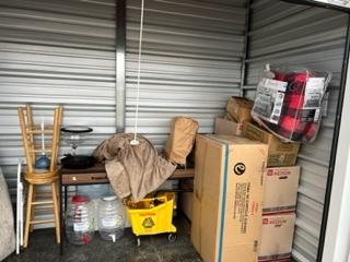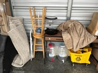 This unit appears to contain…Table, Bar Stools, Boxes, Rugs, Mop Bucket, Bedding