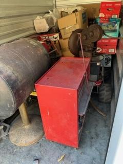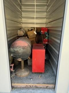 This unit appears to contain…BBQ Grill, Toolbox, Jack Stands, Boxes, Cooler, Bed Frame, Welder.