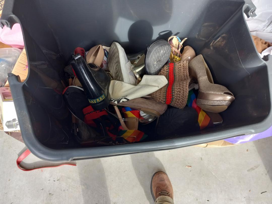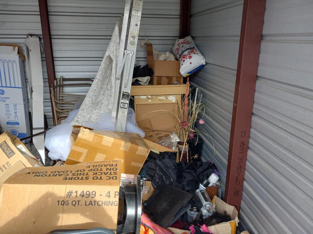 This unit appears to contain…Lots of Personal goods. Gucci sunglasses, folding chairs, home decor, furniture pieces, women's clothing and shoes and more.