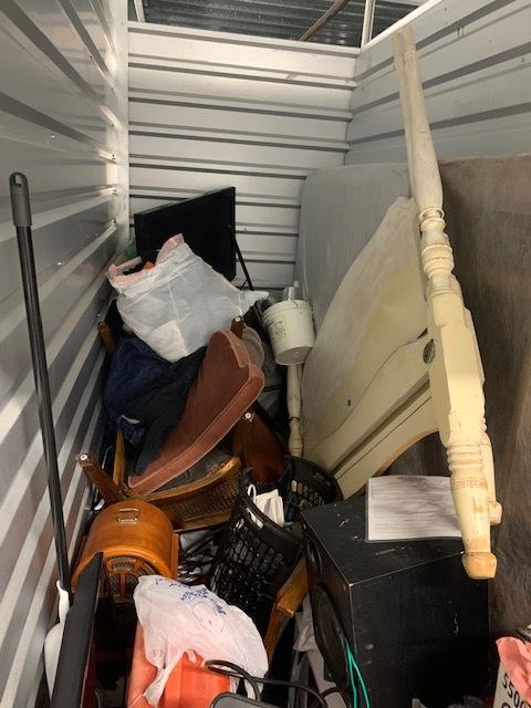 This unit appears to contain…Bed, Boxes, TV, Kitchenware