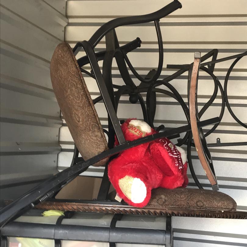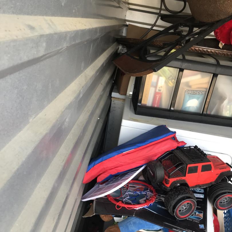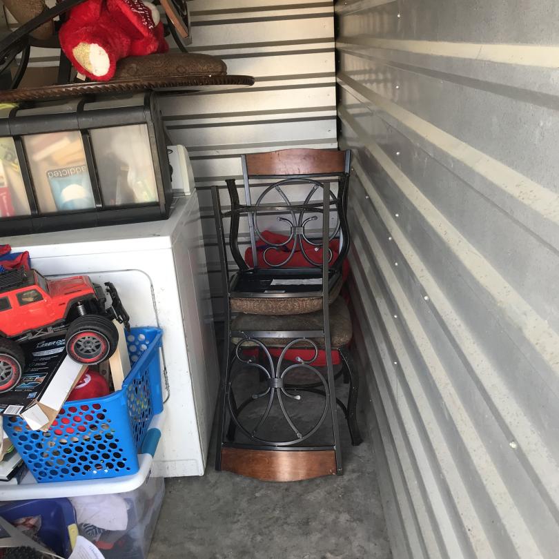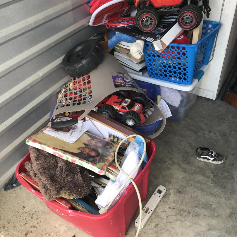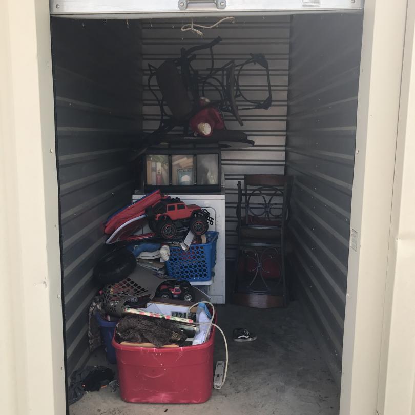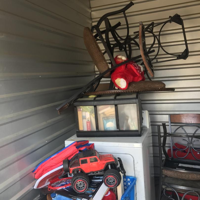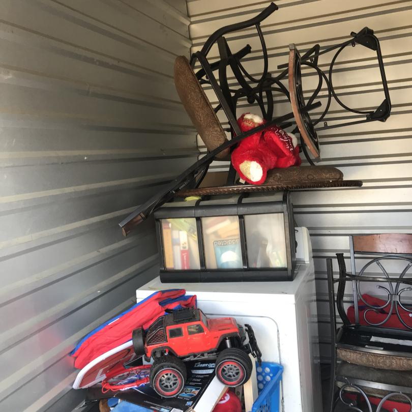 This unit appears to contain…Drive-Up Storage freezer, dryer, chairs, toys, plastic organizers, misc. stuff totes
