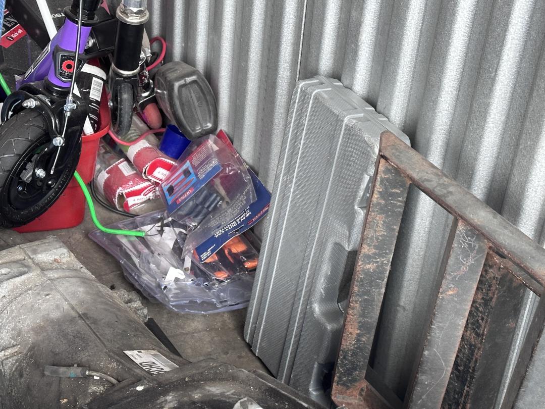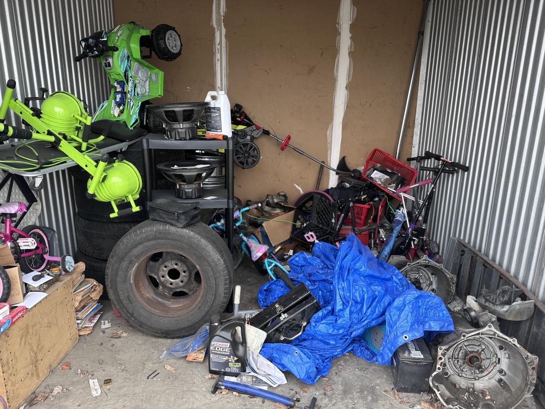 This unit appears to contain…Tool Box,Auto Parts,Tools,Power Tools,Computer Equip.,Shelving,Tables,Patio Furniture,Clothing,Misc. Items,Toys
