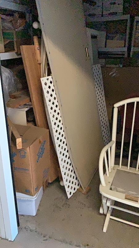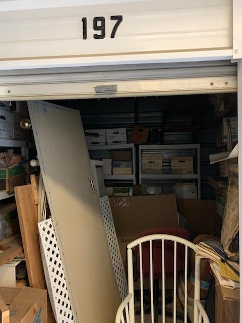 This unit appears to contain…boxes,rocking chair,file cabinet,chairs