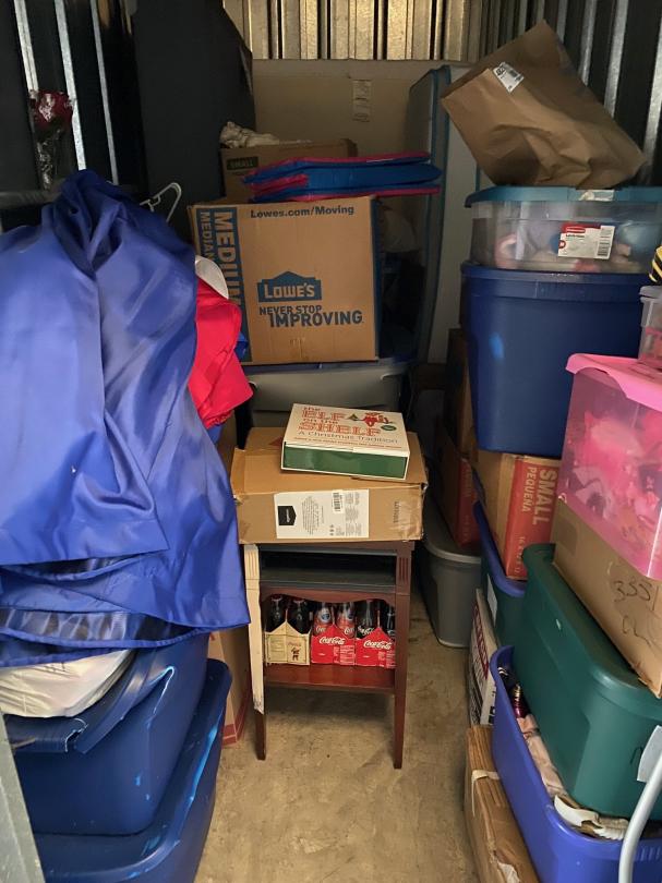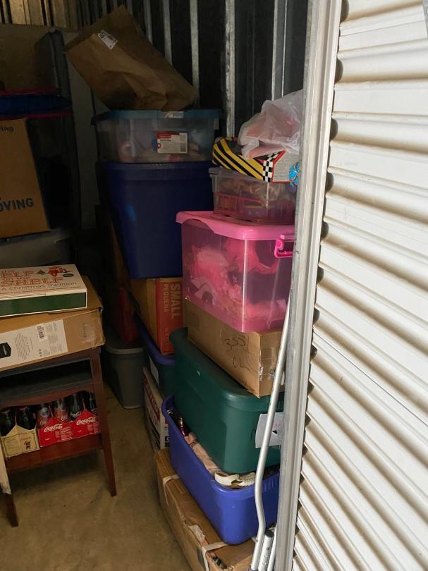 This unit appears to contain…Totes, Boxes, Mattress, Side Table