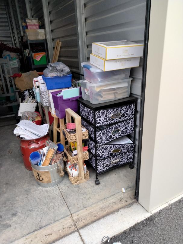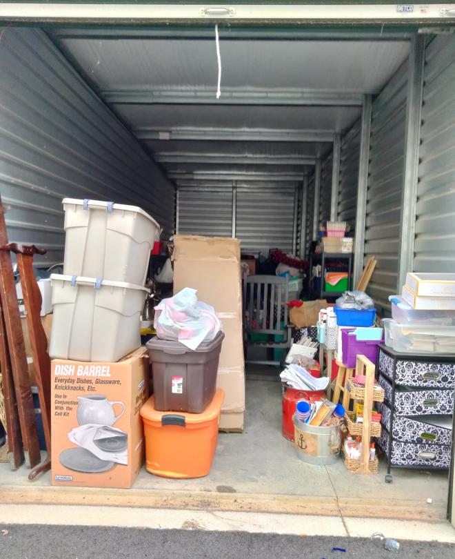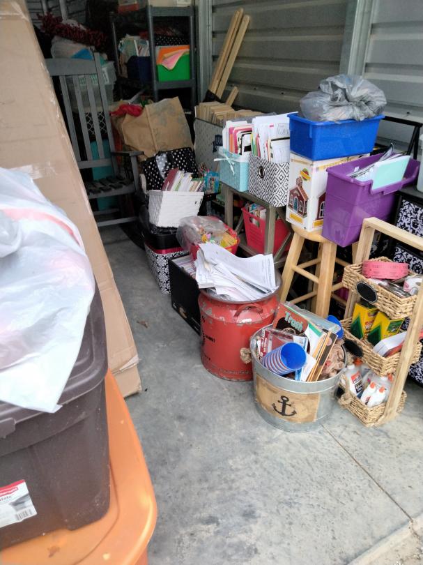 This unit appears to contain…totes, furniture, boxes, school supplies